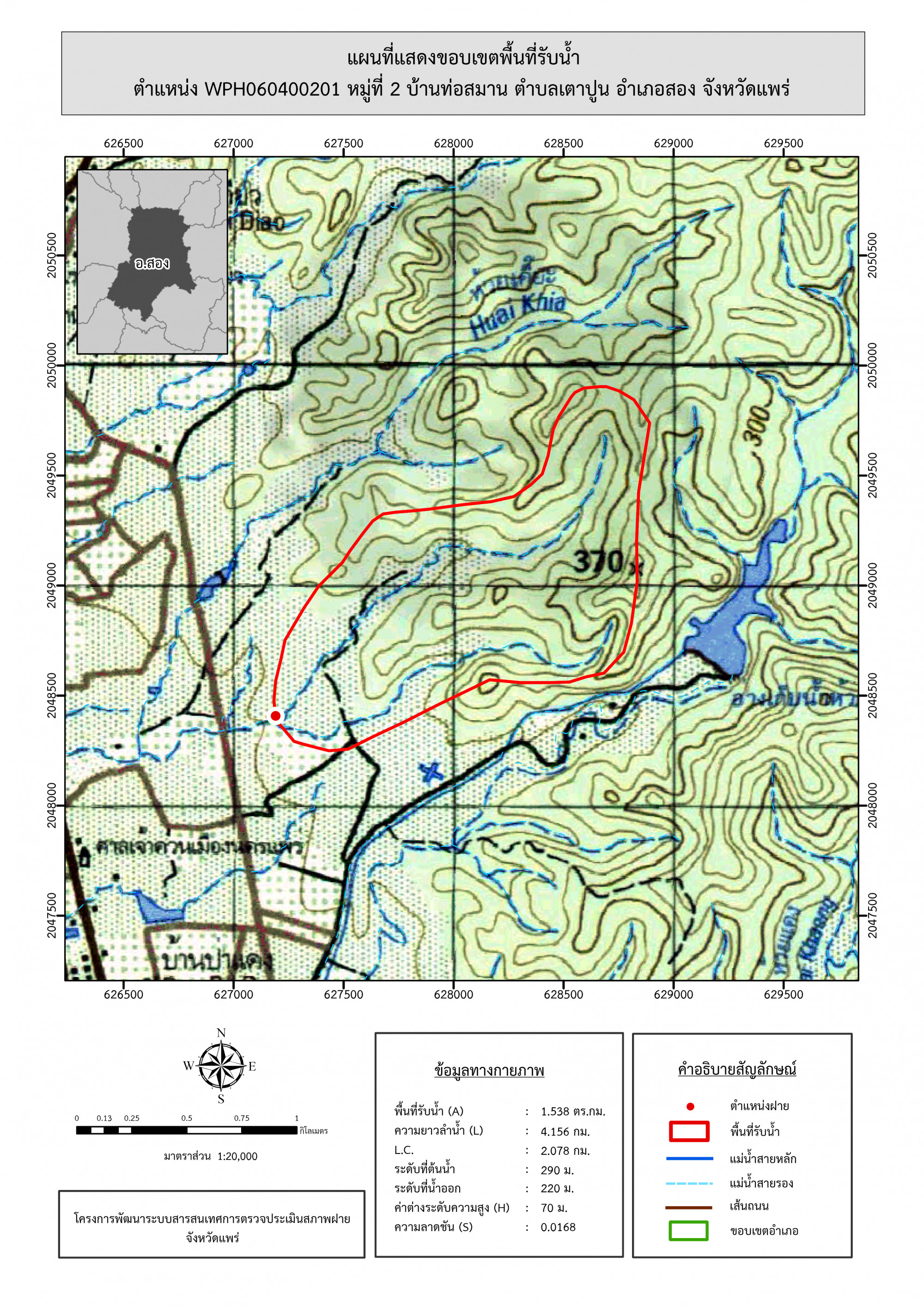 รูปภาพแผนที่แสดงขอบเขตพื้นที่รับน้ำ