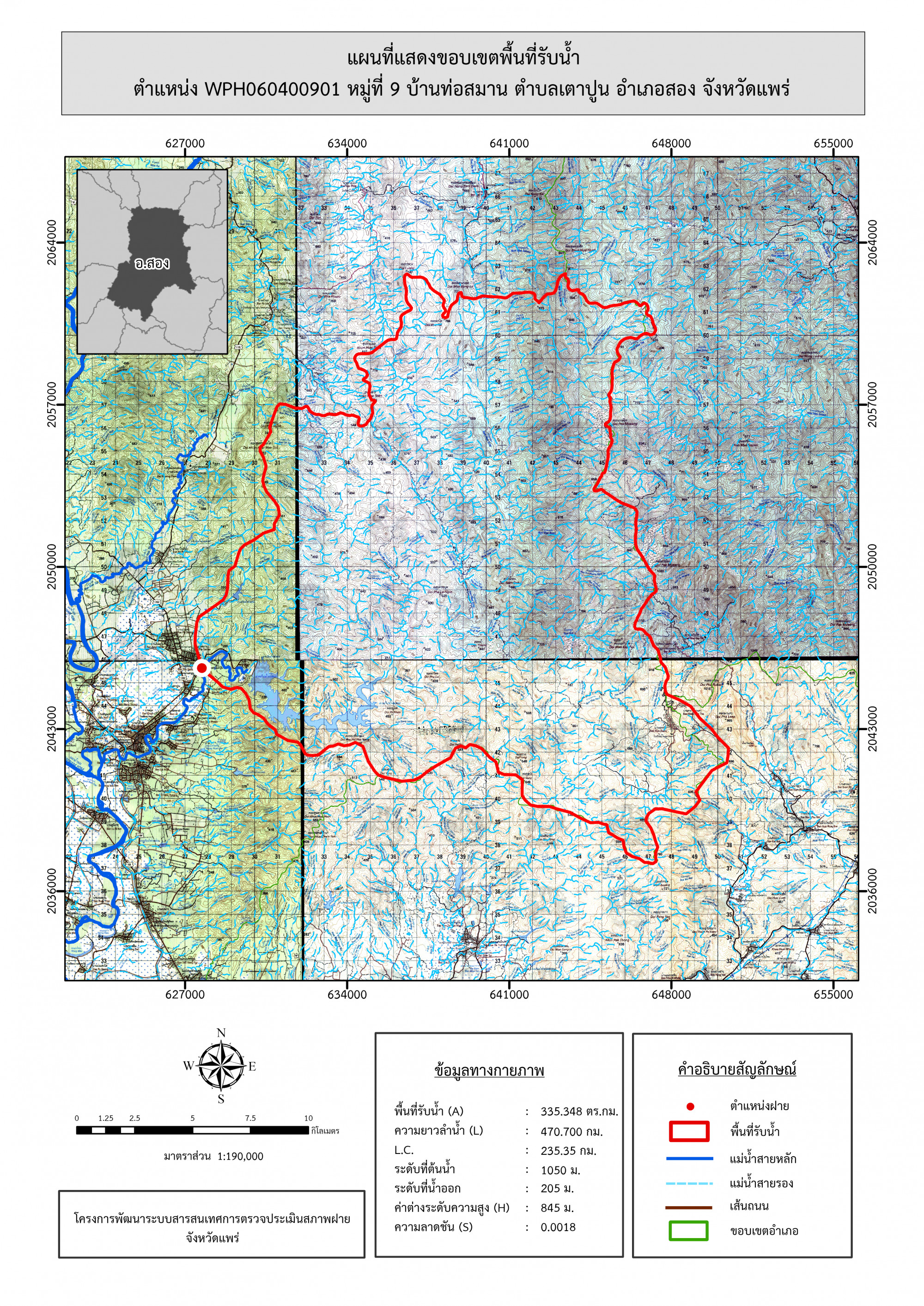 รูปภาพแผนที่แสดงขอบเขตพื้นที่รับน้ำ