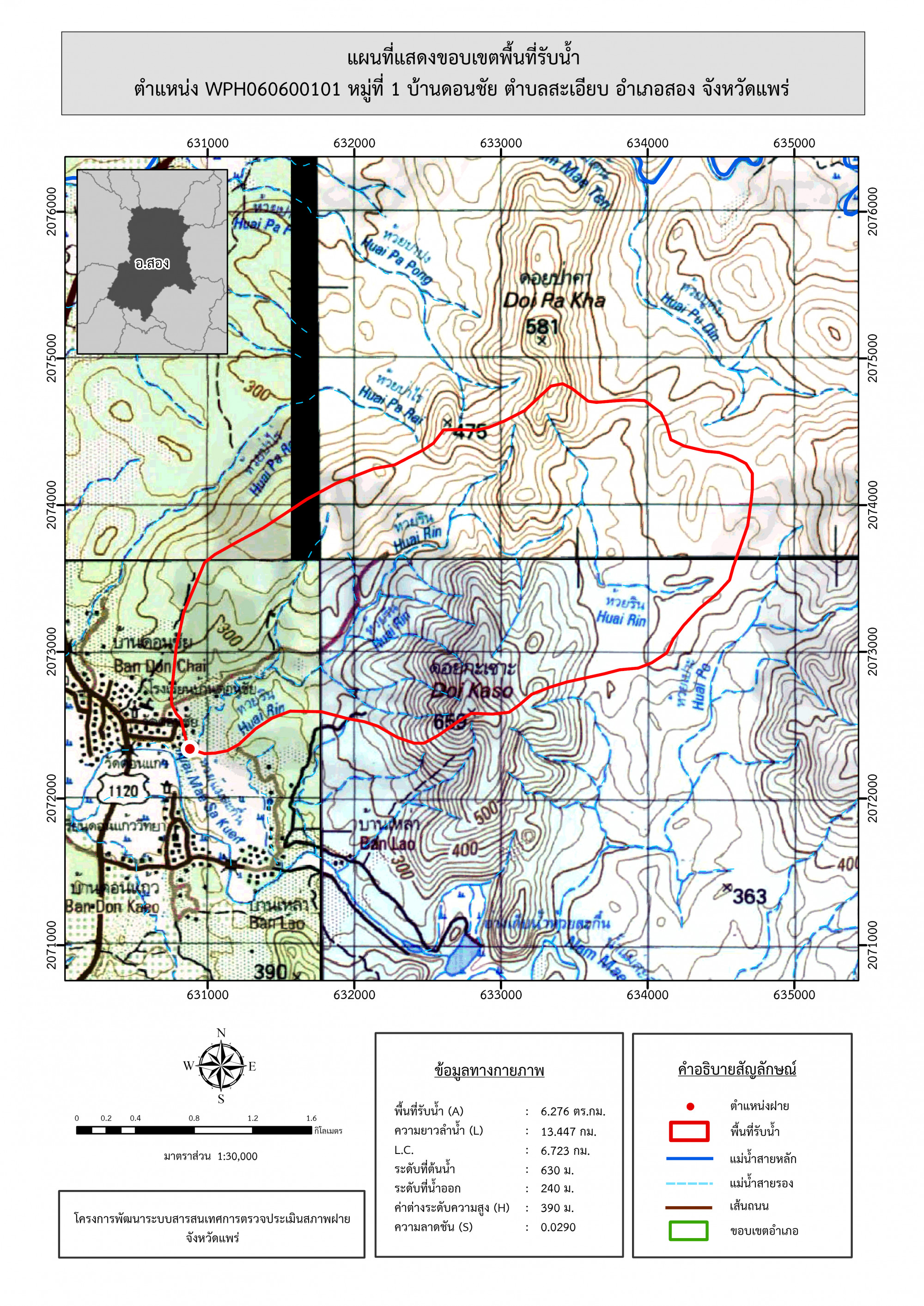 รูปภาพแผนที่แสดงขอบเขตพื้นที่รับน้ำ