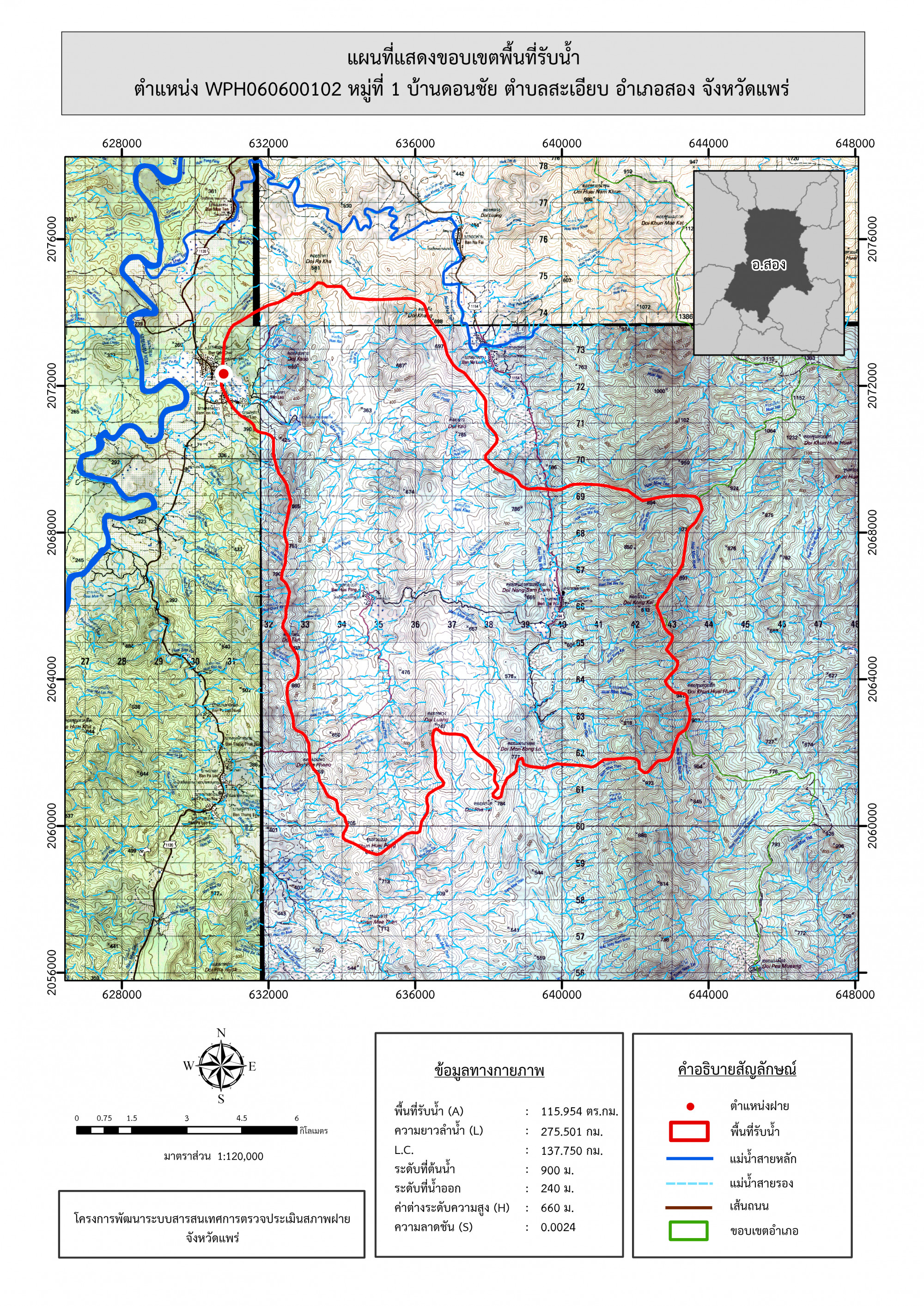 รูปภาพแผนที่แสดงขอบเขตพื้นที่รับน้ำ