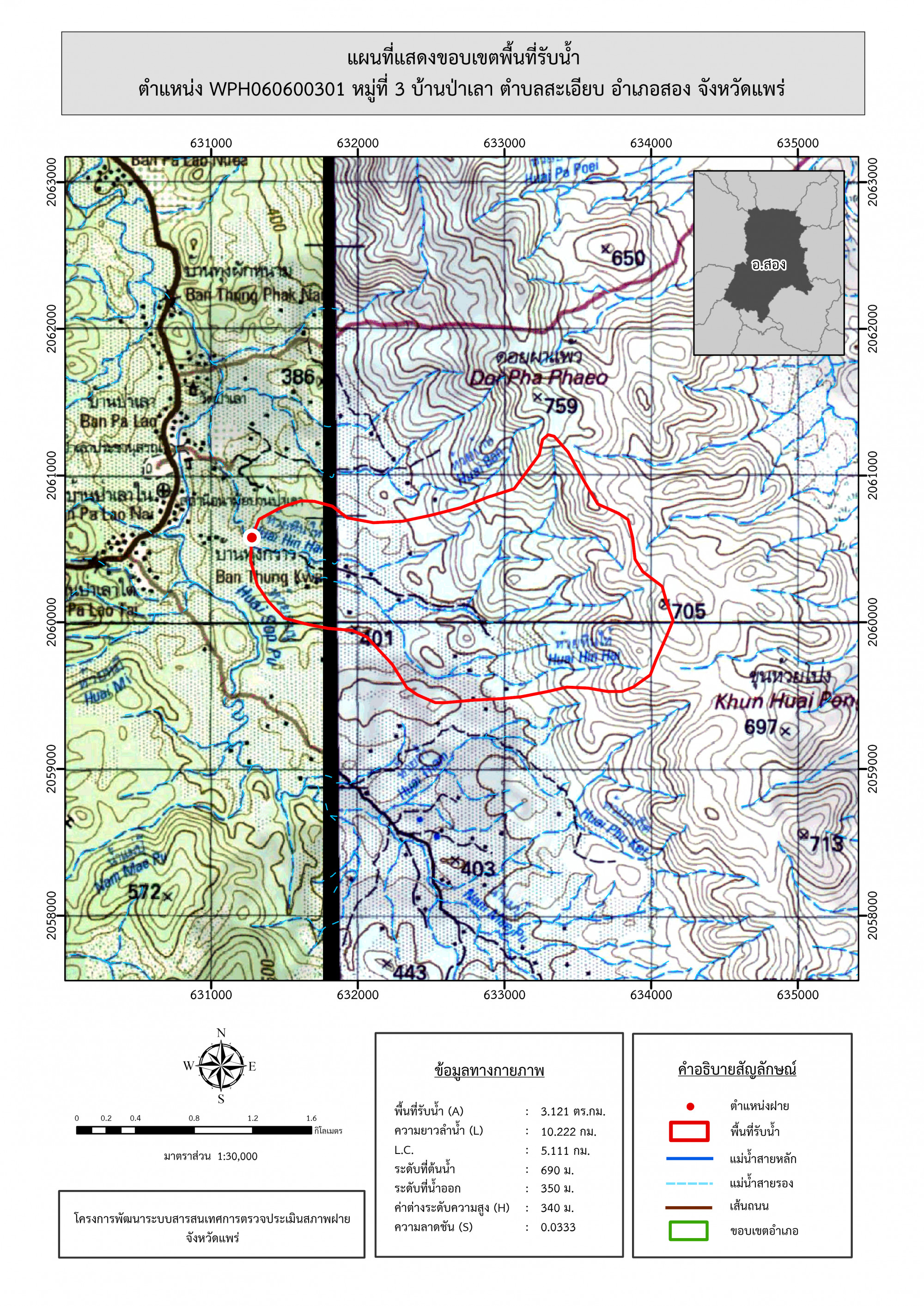 รูปภาพแผนที่แสดงขอบเขตพื้นที่รับน้ำ