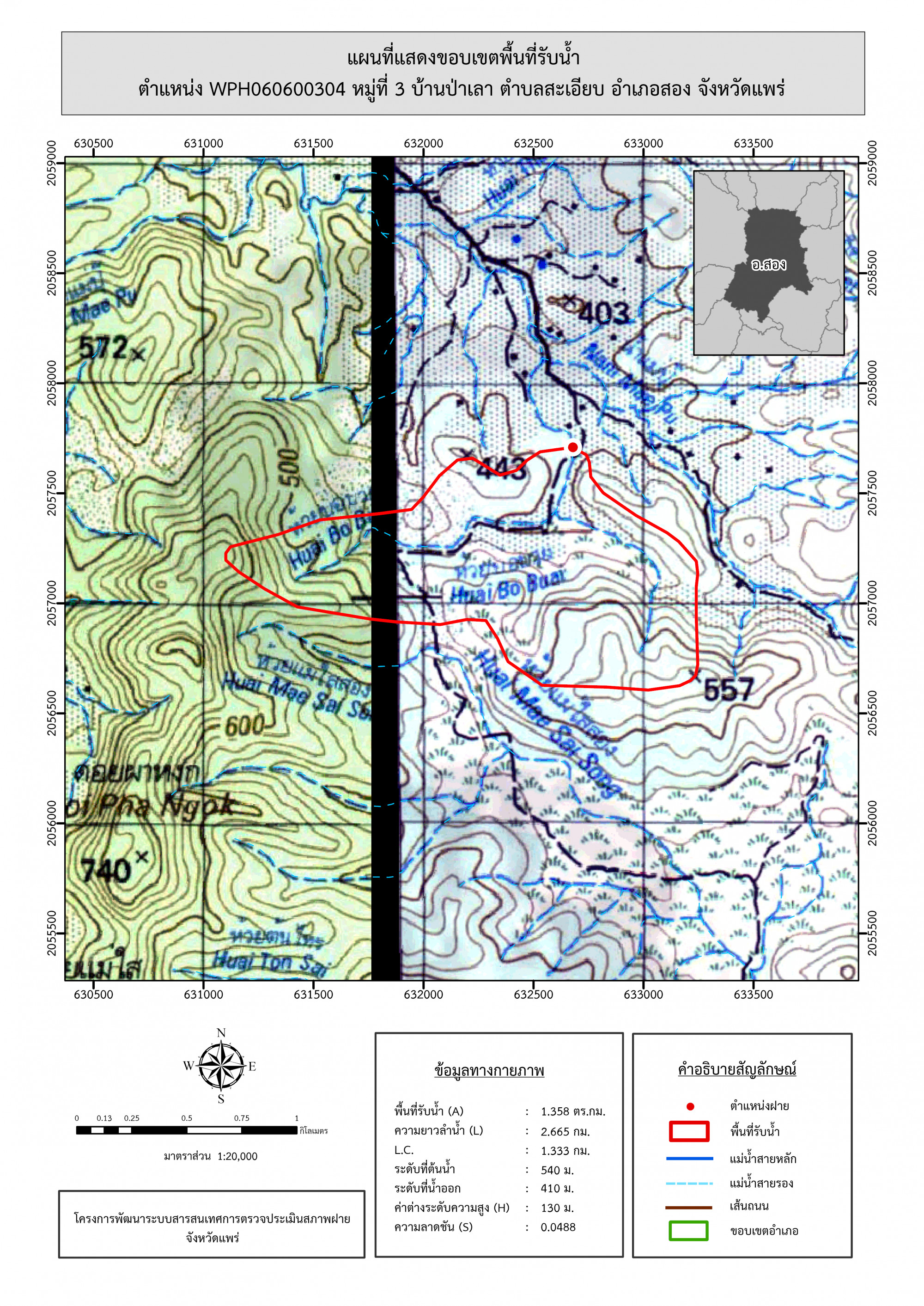 รูปภาพแผนที่แสดงขอบเขตพื้นที่รับน้ำ