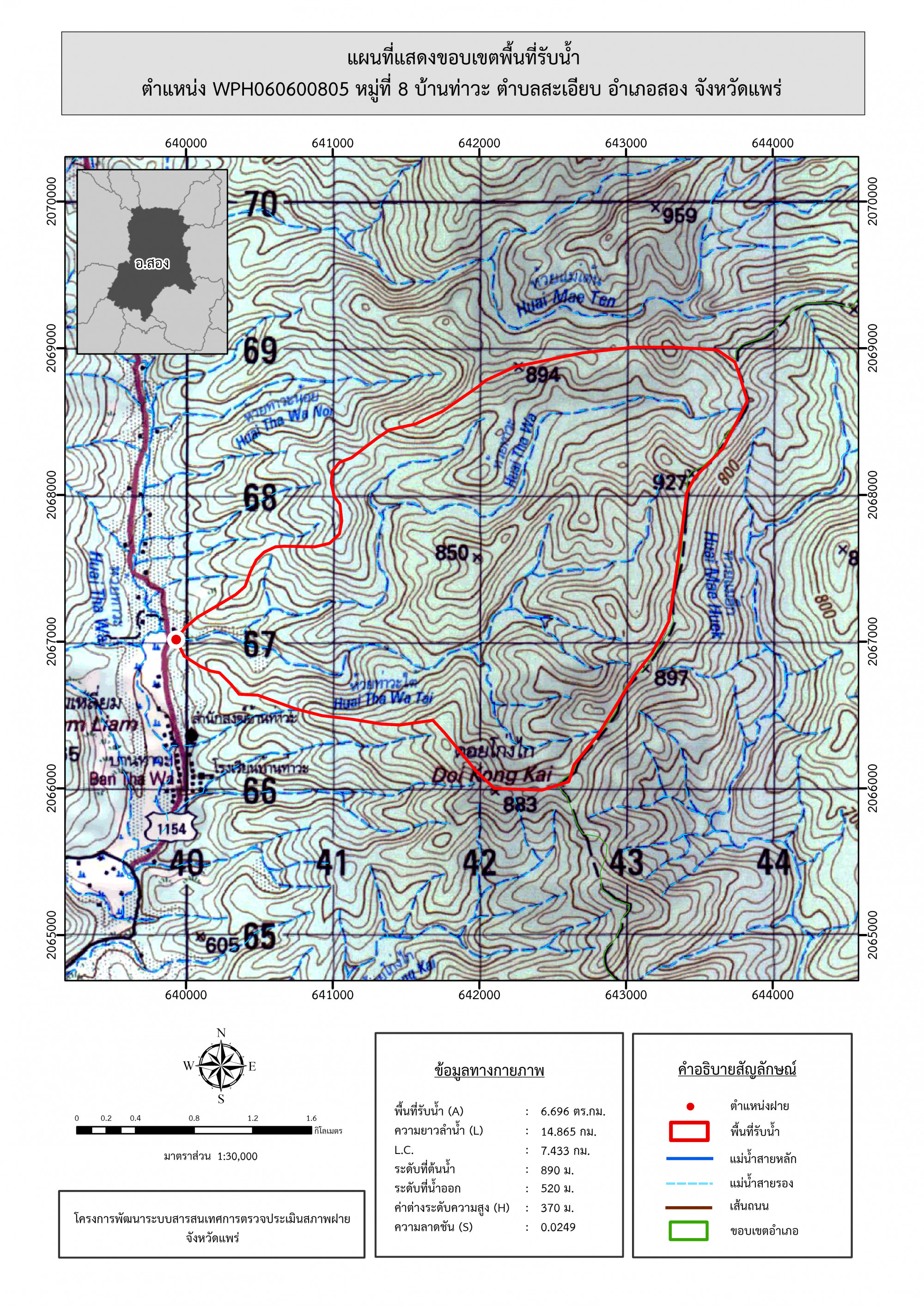 รูปภาพแผนที่แสดงขอบเขตพื้นที่รับน้ำ