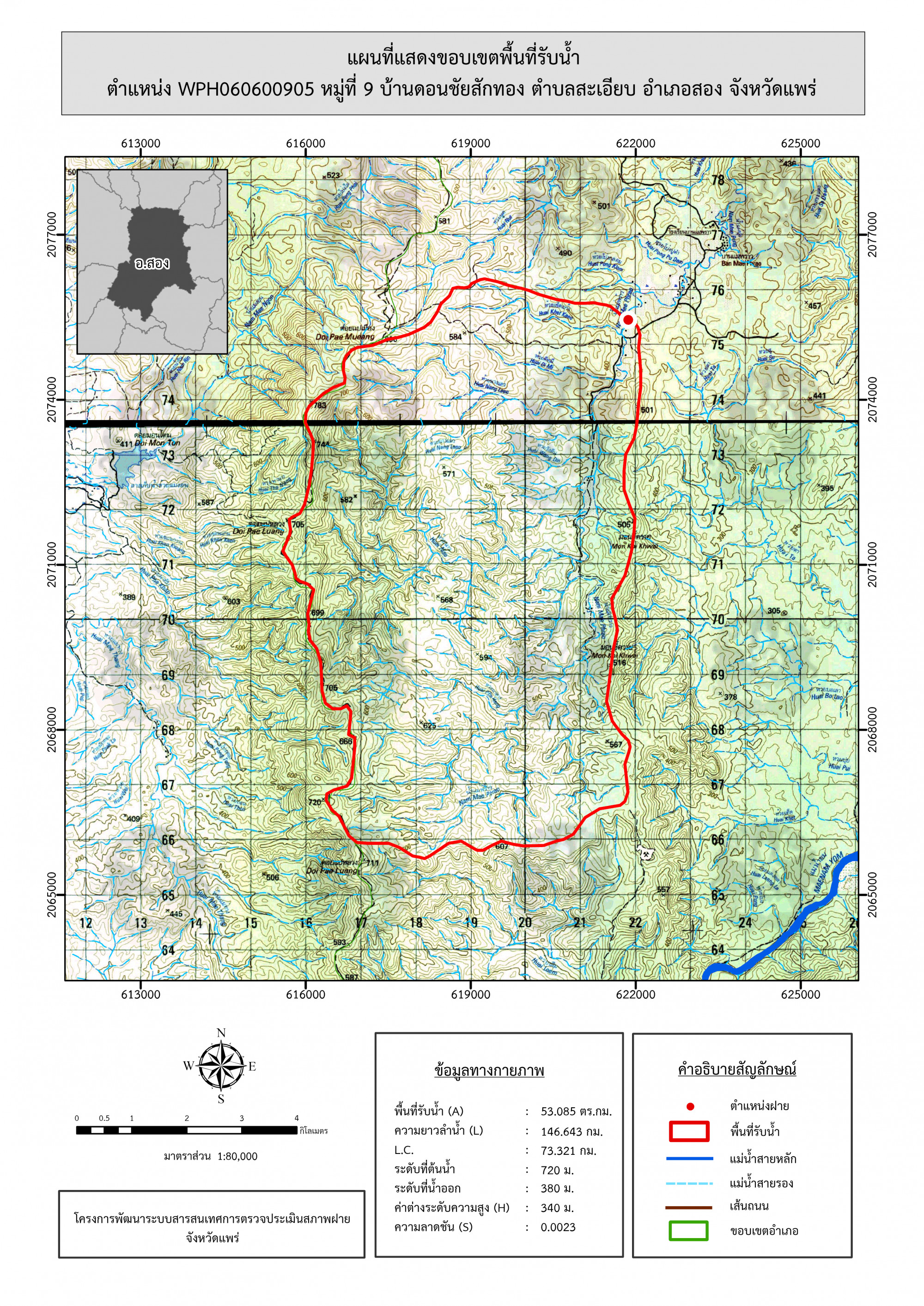 รูปภาพแผนที่แสดงขอบเขตพื้นที่รับน้ำ