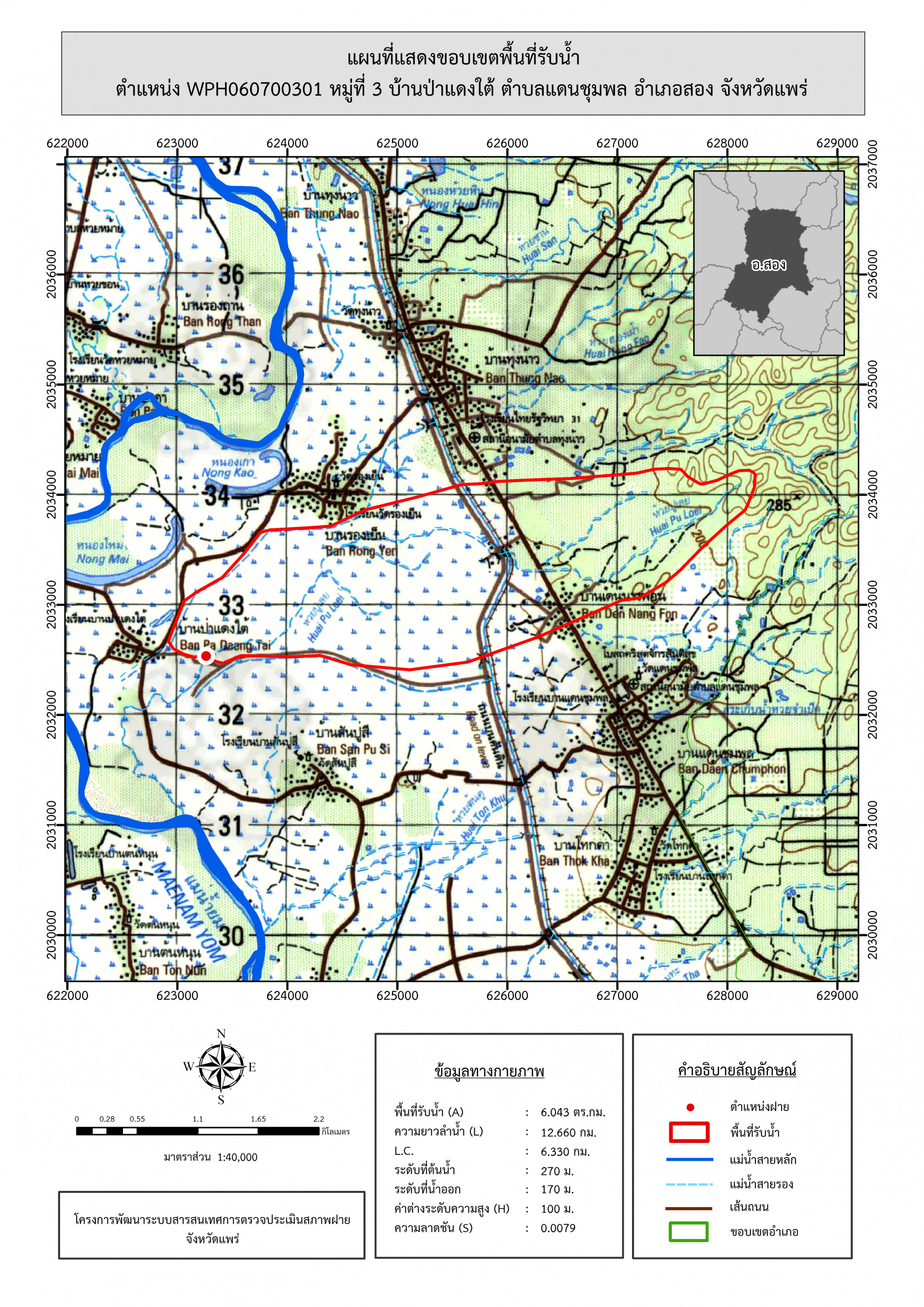 รูปภาพแผนที่แสดงขอบเขตพื้นที่รับน้ำ