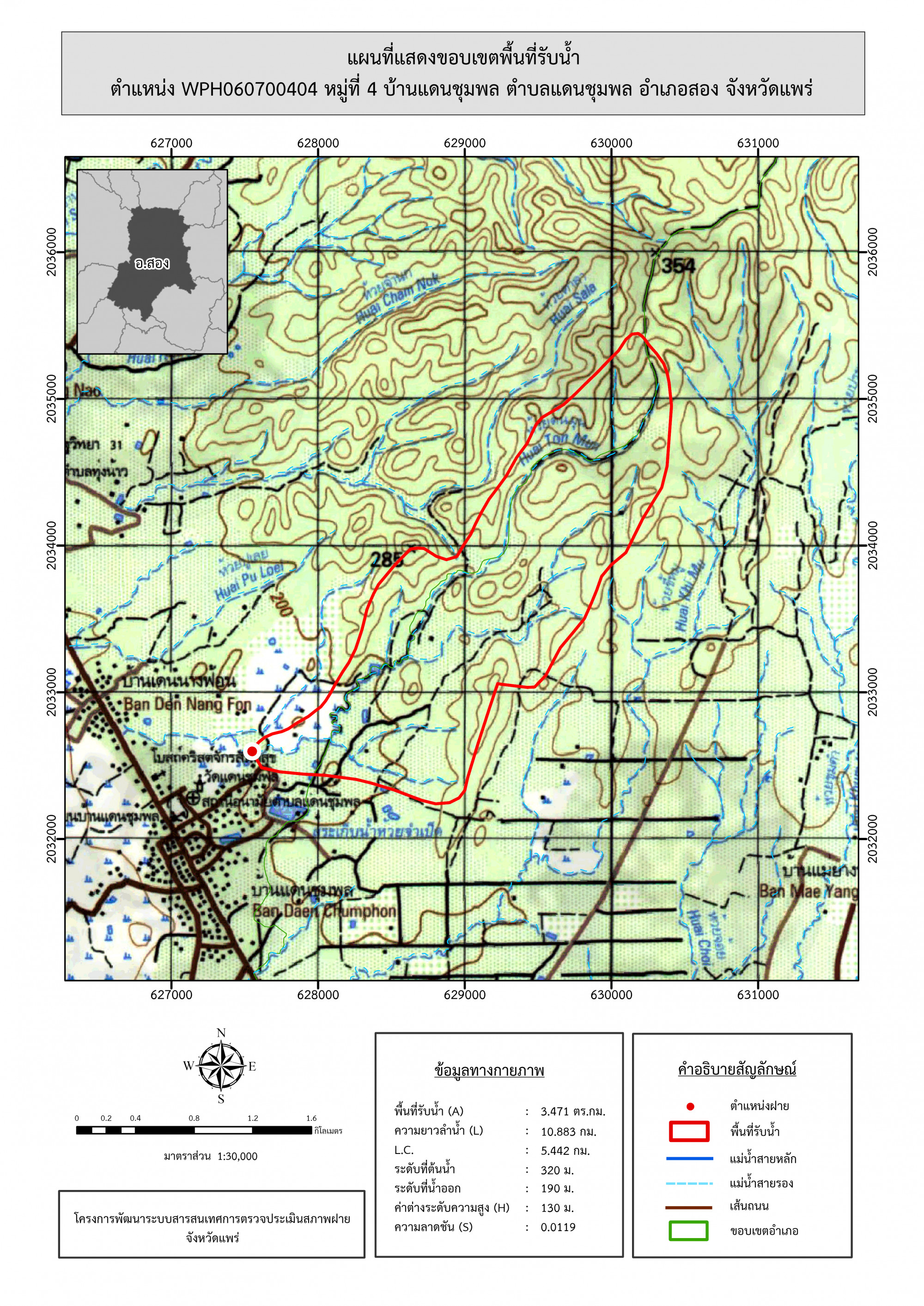 รูปภาพแผนที่แสดงขอบเขตพื้นที่รับน้ำ