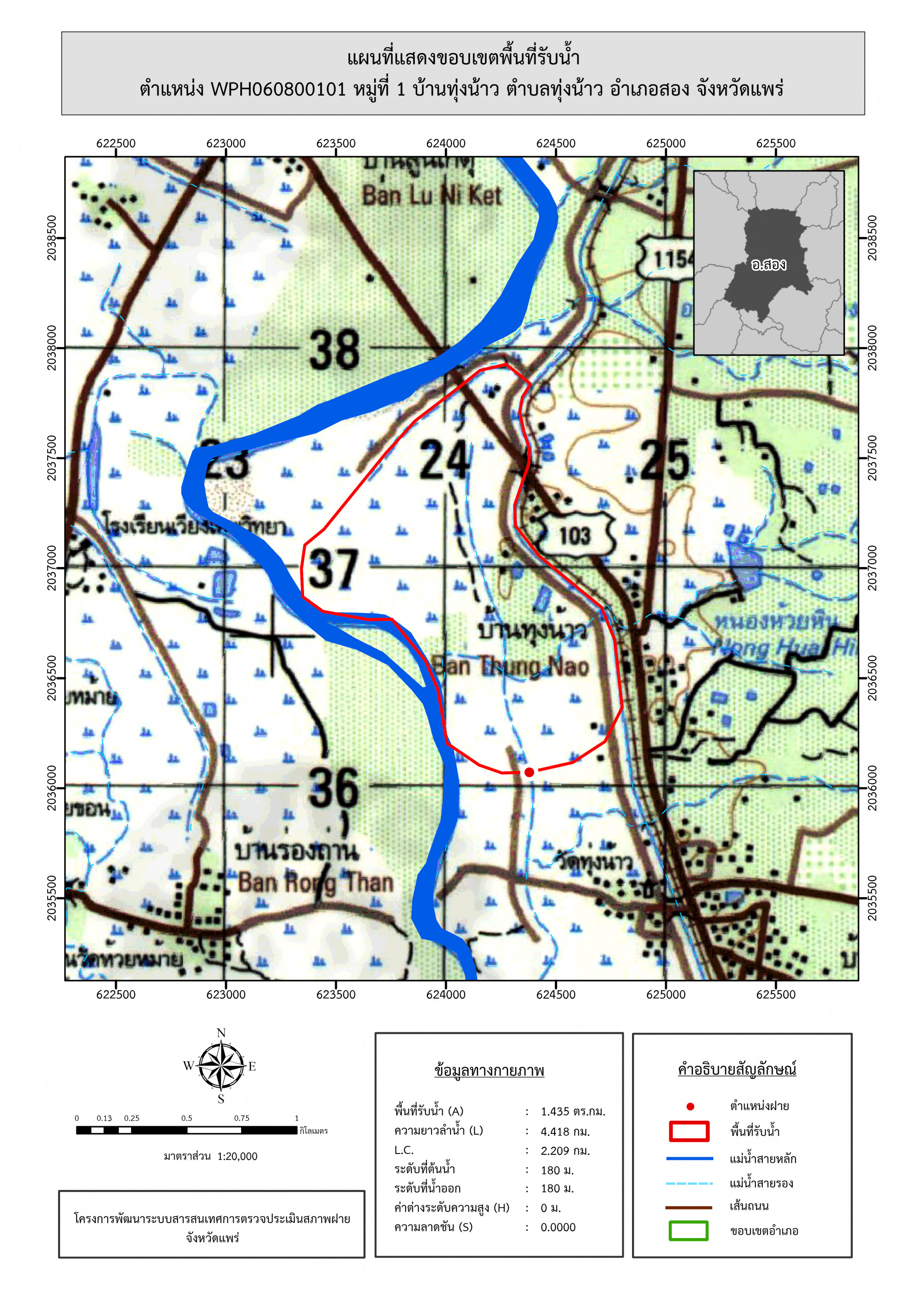 รูปภาพแผนที่แสดงขอบเขตพื้นที่รับน้ำ