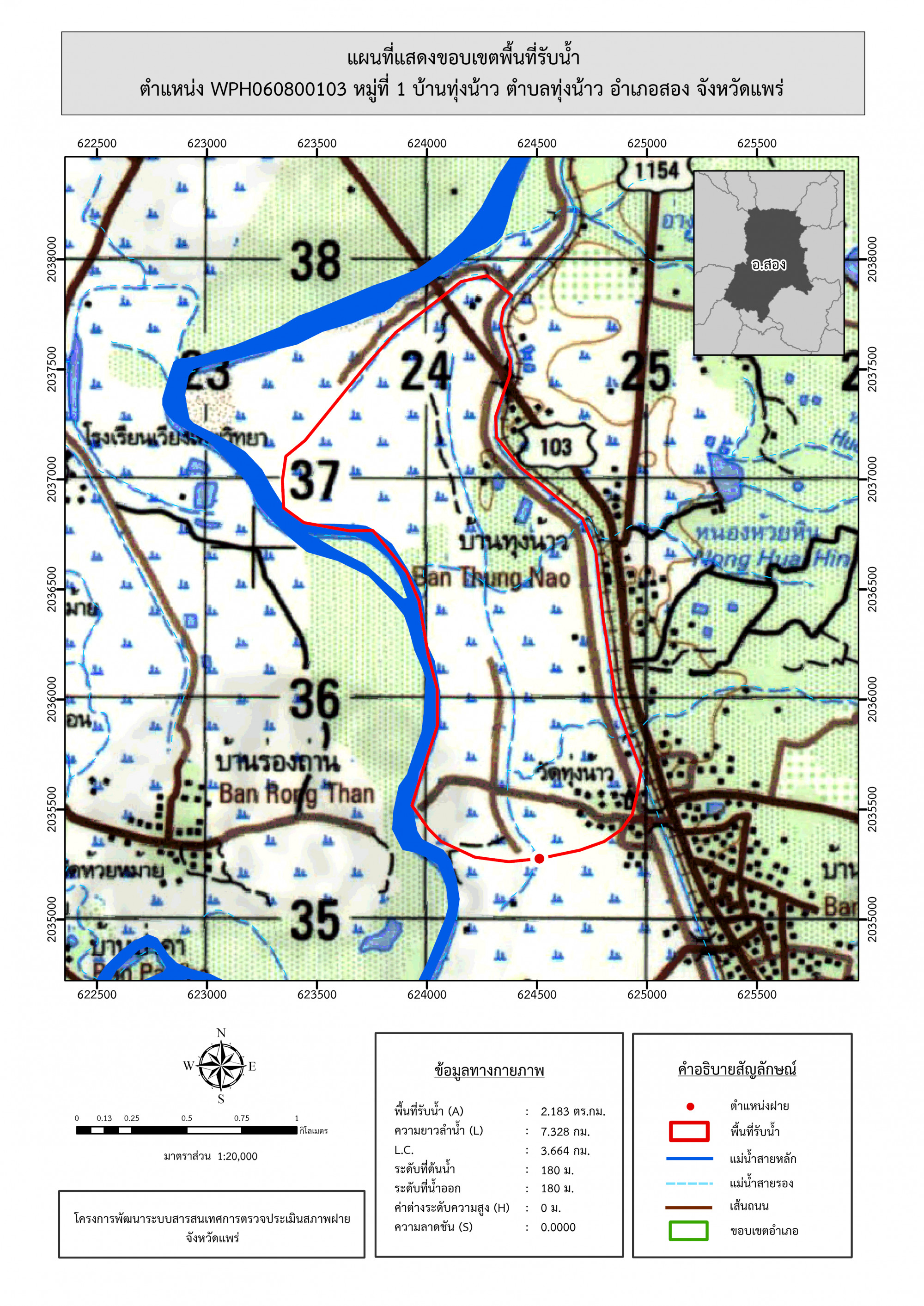 รูปภาพแผนที่แสดงขอบเขตพื้นที่รับน้ำ