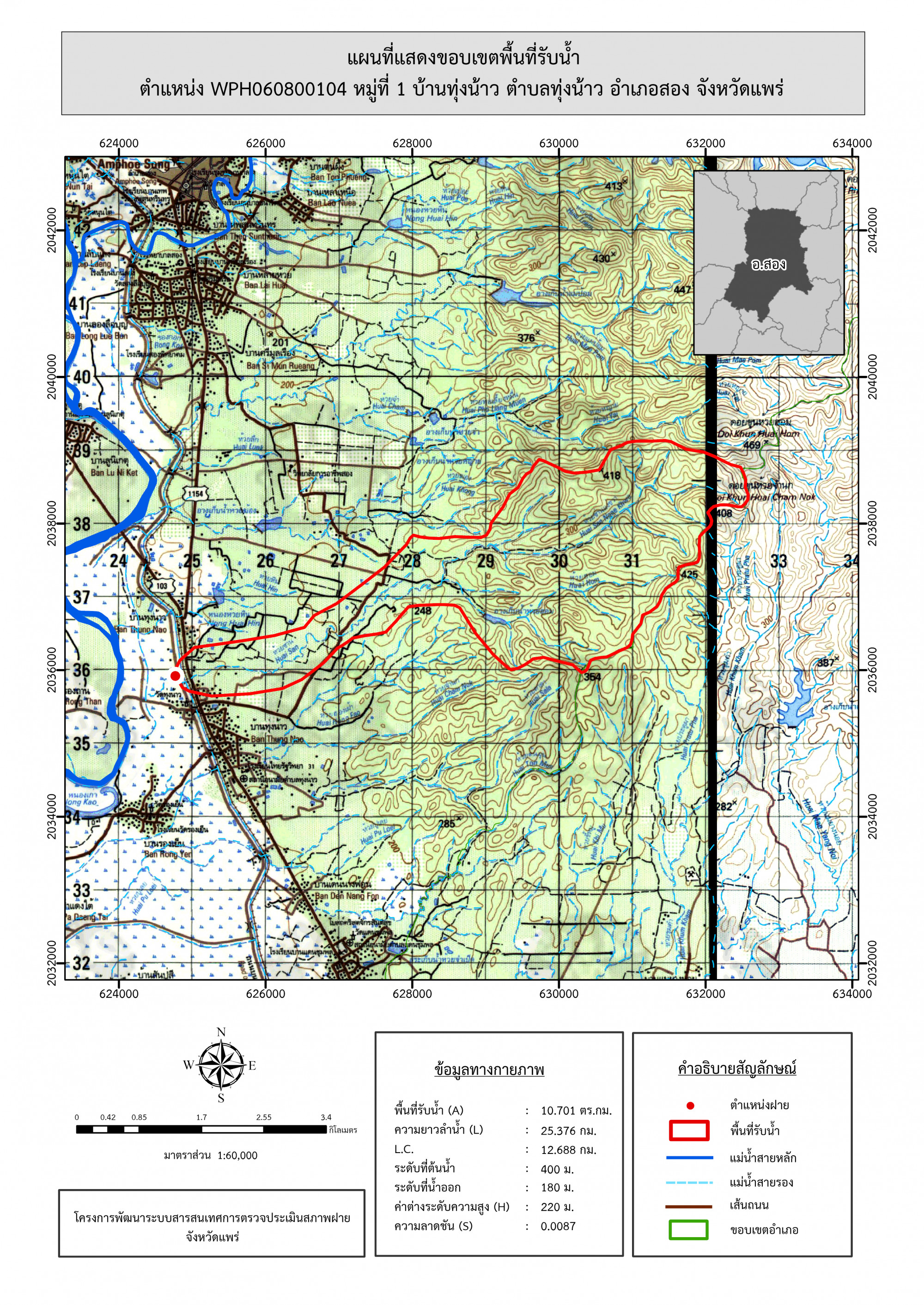 รูปภาพแผนที่แสดงขอบเขตพื้นที่รับน้ำ