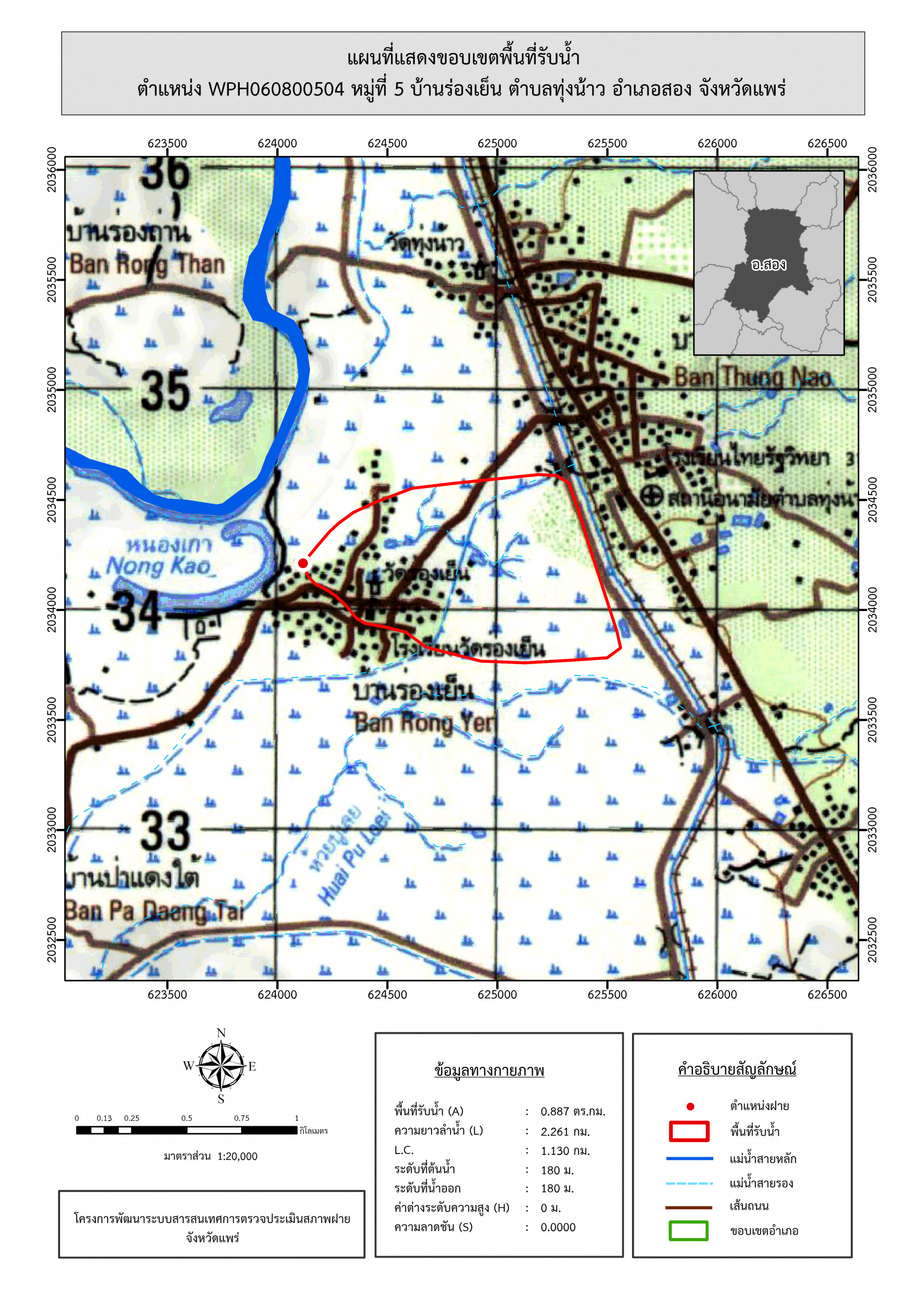รูปภาพแผนที่แสดงขอบเขตพื้นที่รับน้ำ