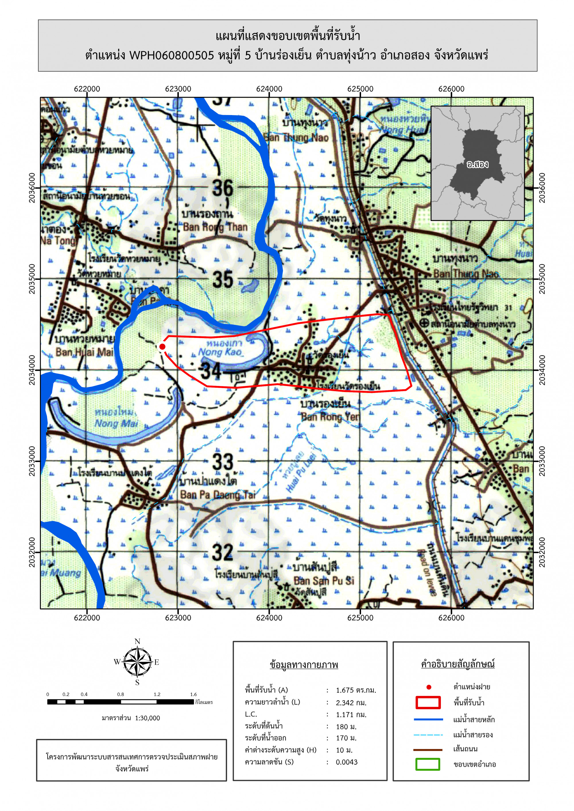 รูปภาพแผนที่แสดงขอบเขตพื้นที่รับน้ำ