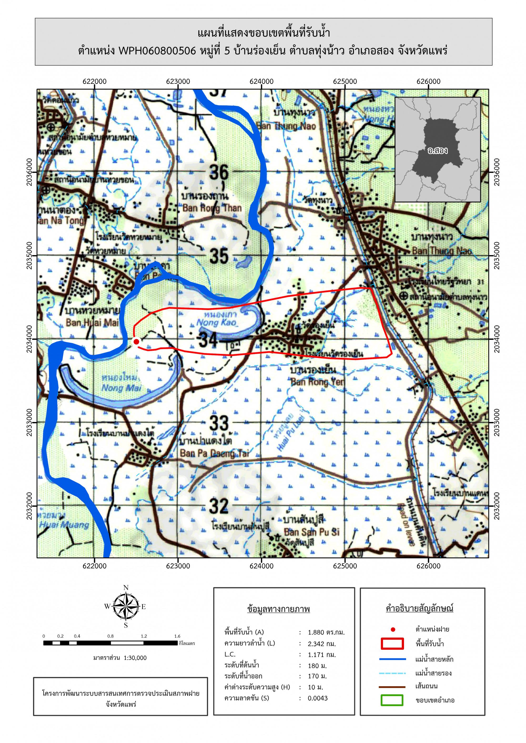 รูปภาพแผนที่แสดงขอบเขตพื้นที่รับน้ำ