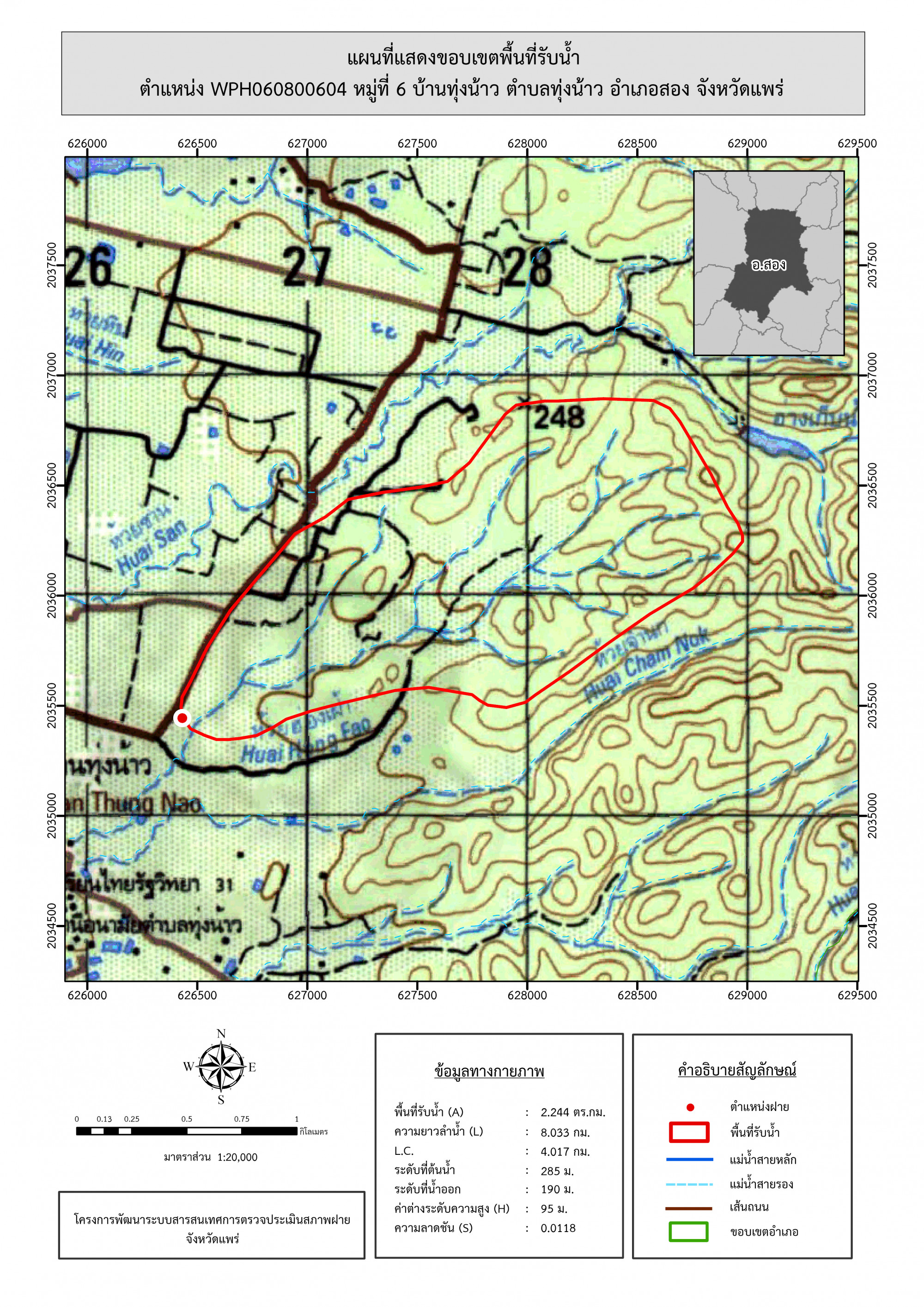รูปภาพแผนที่แสดงขอบเขตพื้นที่รับน้ำ
