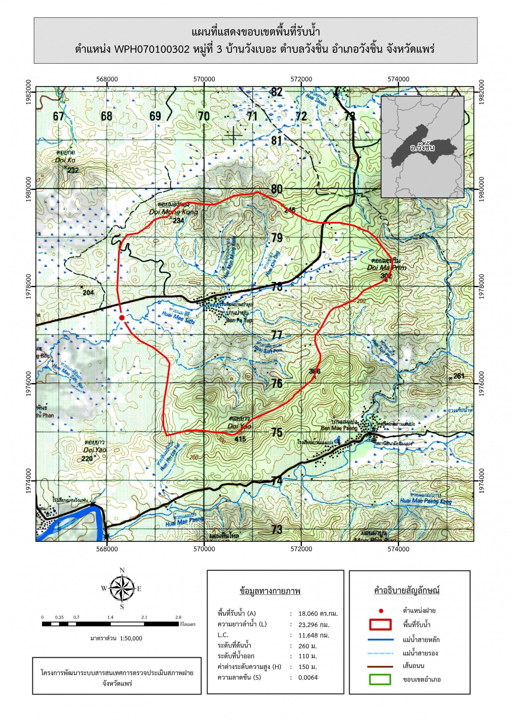 รูปภาพแผนที่แสดงขอบเขตพื้นที่รับน้ำ