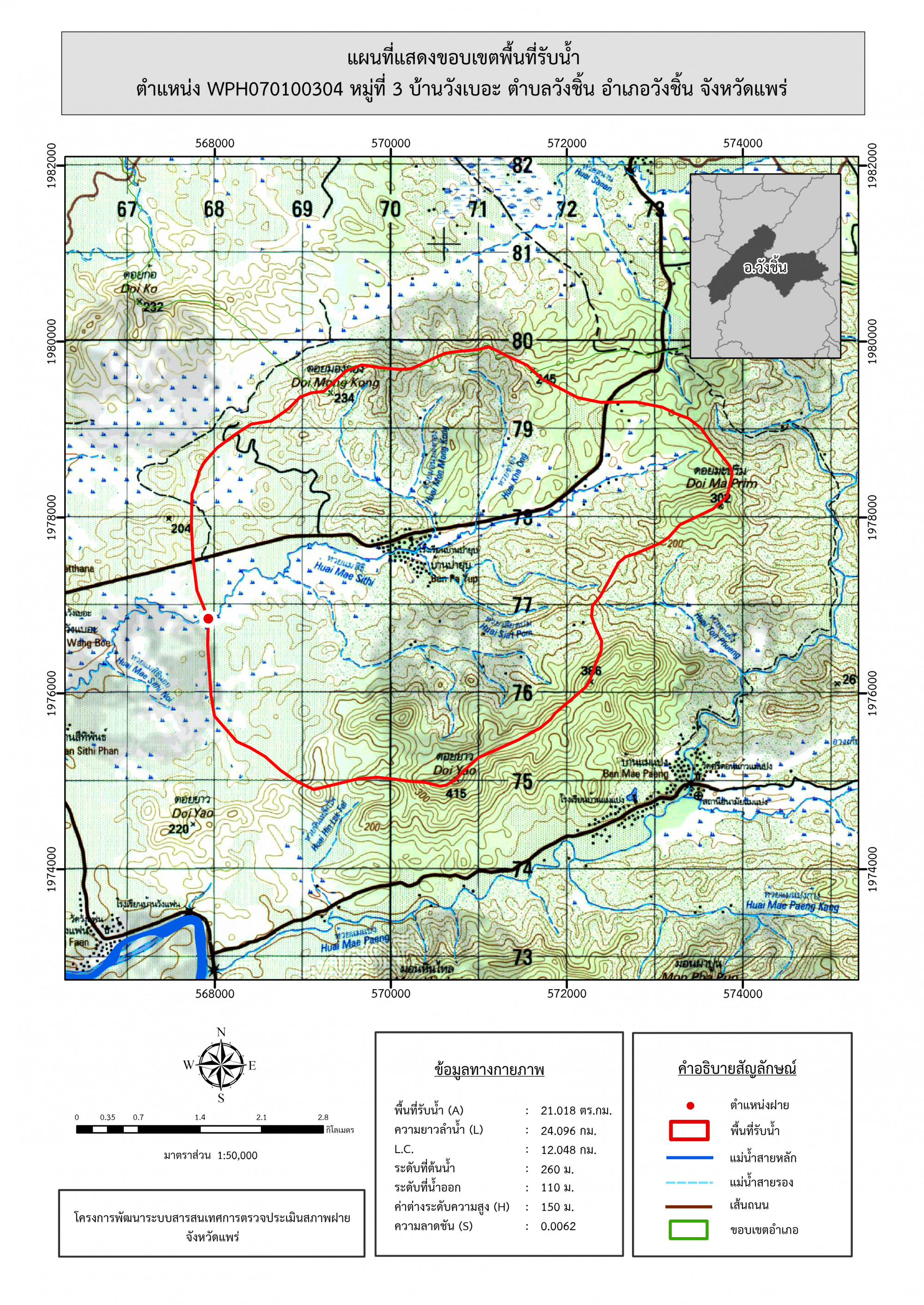 รูปภาพแผนที่แสดงขอบเขตพื้นที่รับน้ำ