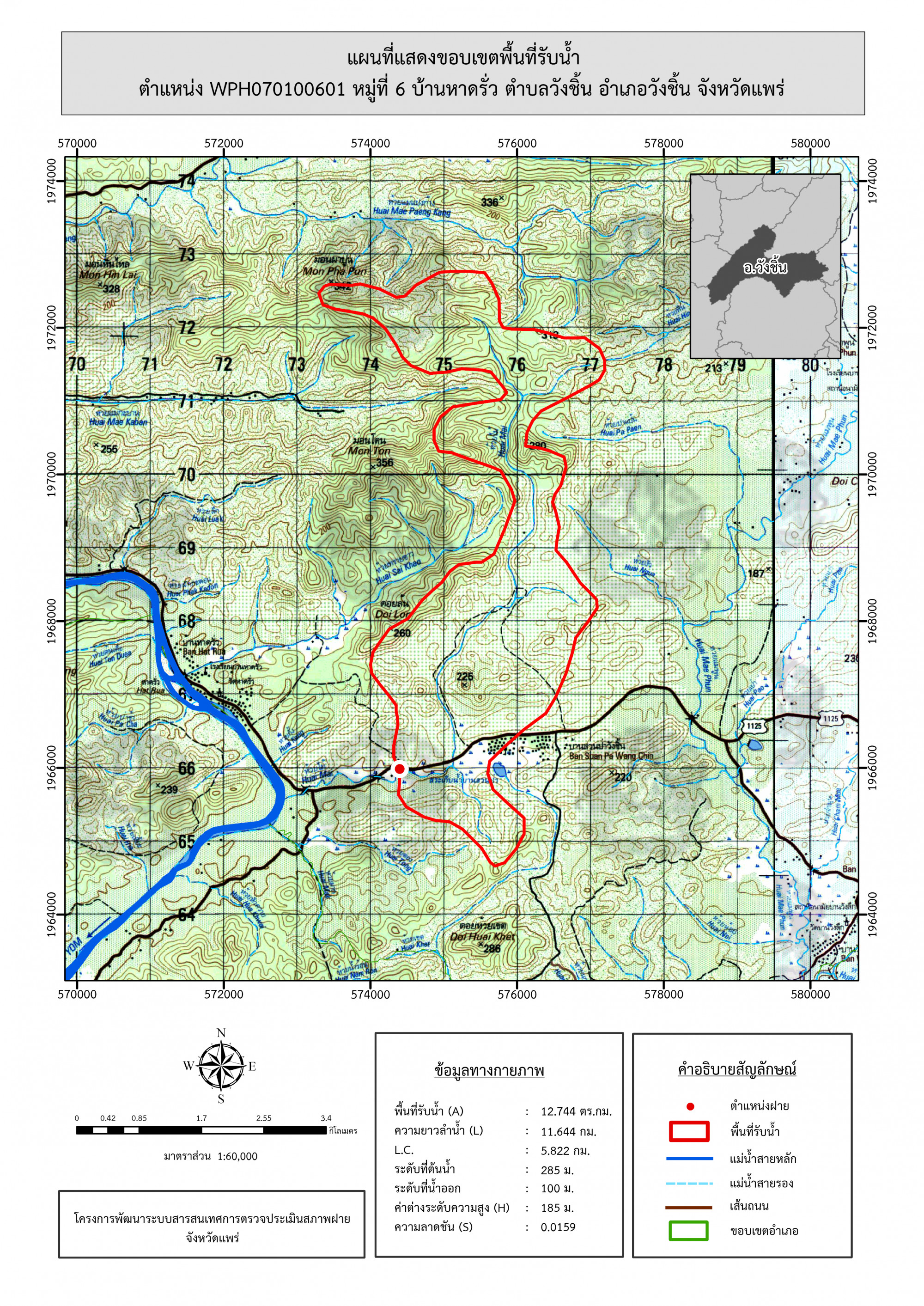 รูปภาพแผนที่แสดงขอบเขตพื้นที่รับน้ำ
