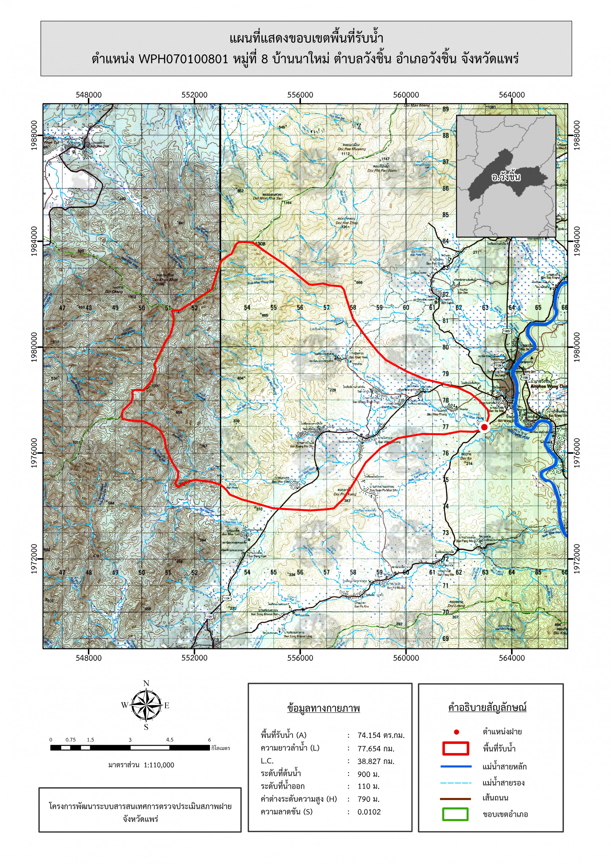รูปภาพแผนที่แสดงขอบเขตพื้นที่รับน้ำ