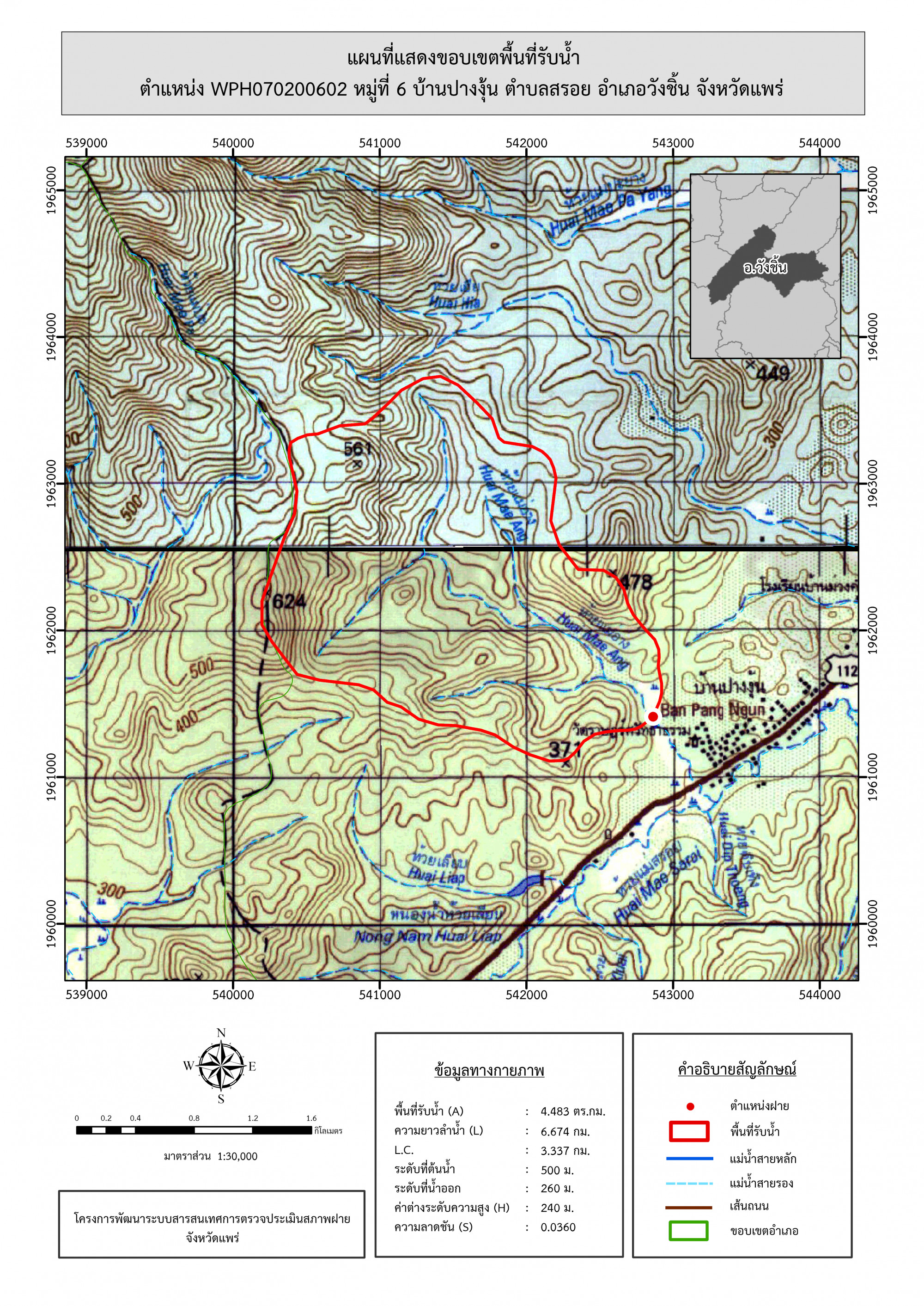 รูปภาพแผนที่แสดงขอบเขตพื้นที่รับน้ำ