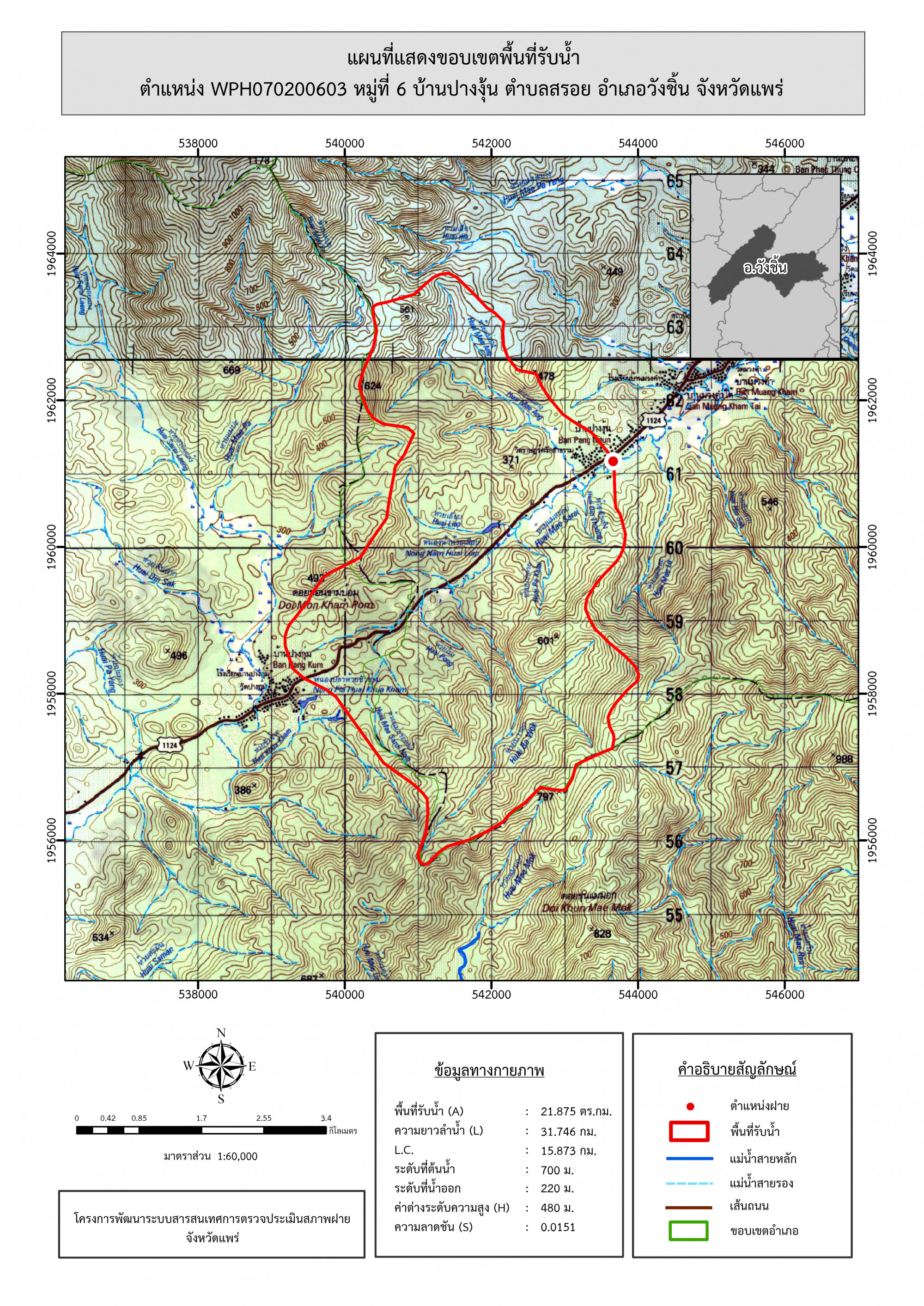 รูปภาพแผนที่แสดงขอบเขตพื้นที่รับน้ำ