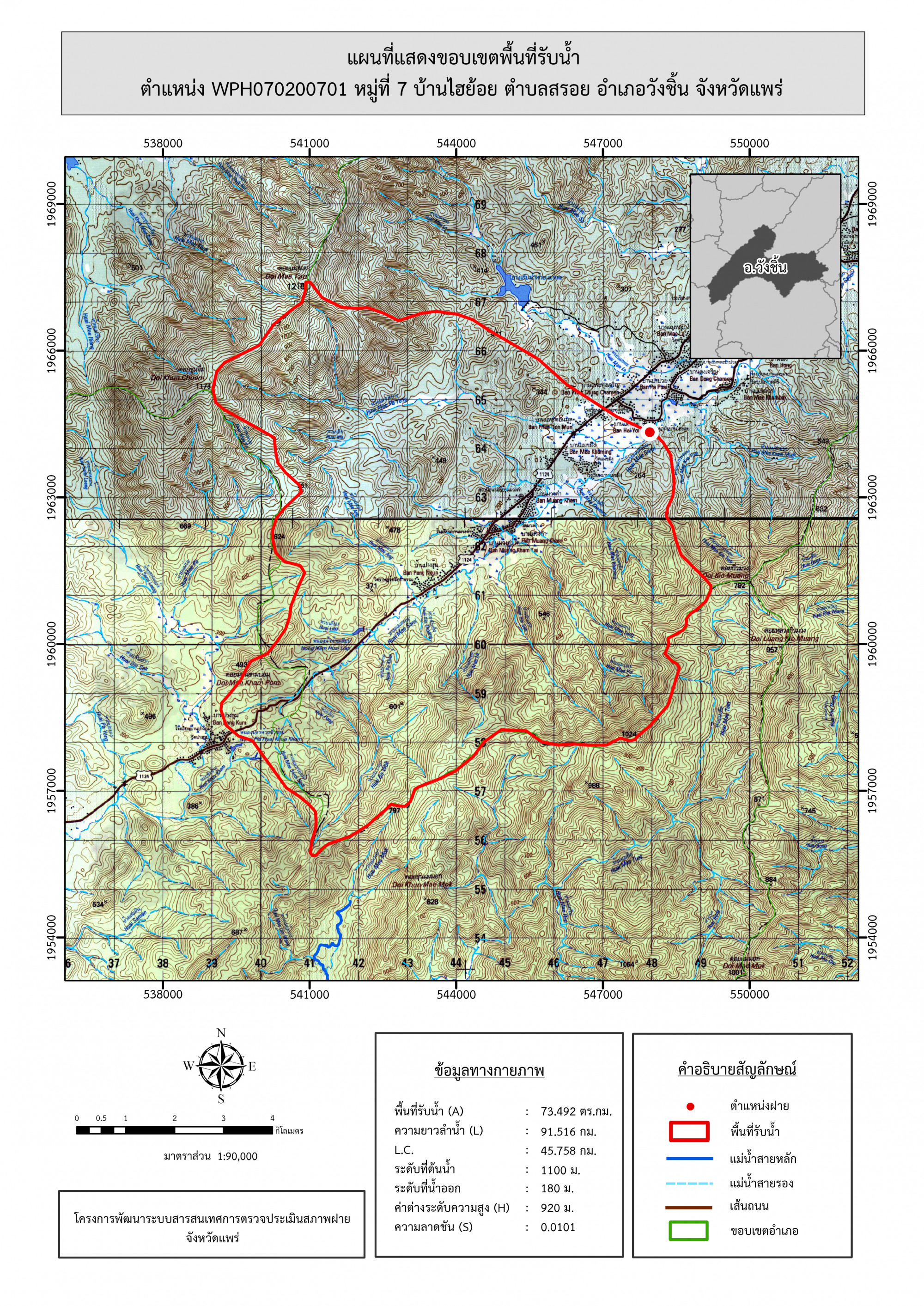 รูปภาพแผนที่แสดงขอบเขตพื้นที่รับน้ำ