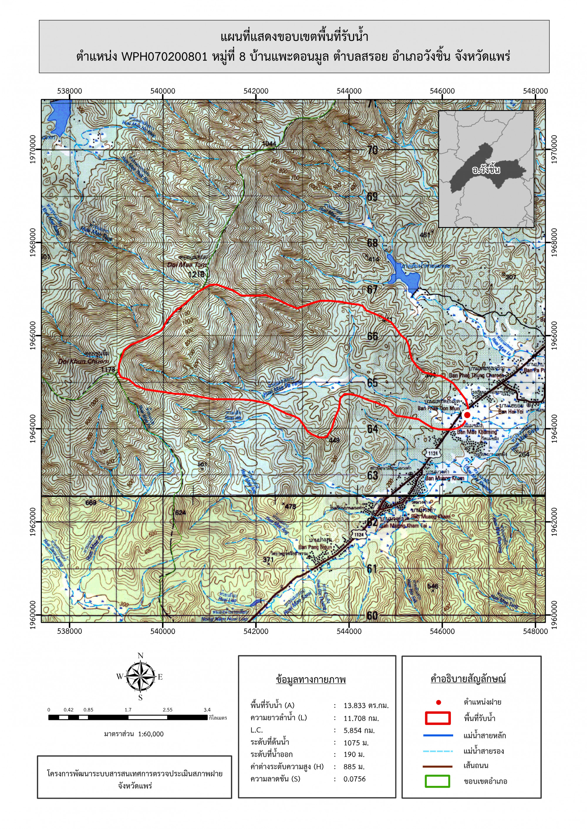 รูปภาพแผนที่แสดงขอบเขตพื้นที่รับน้ำ