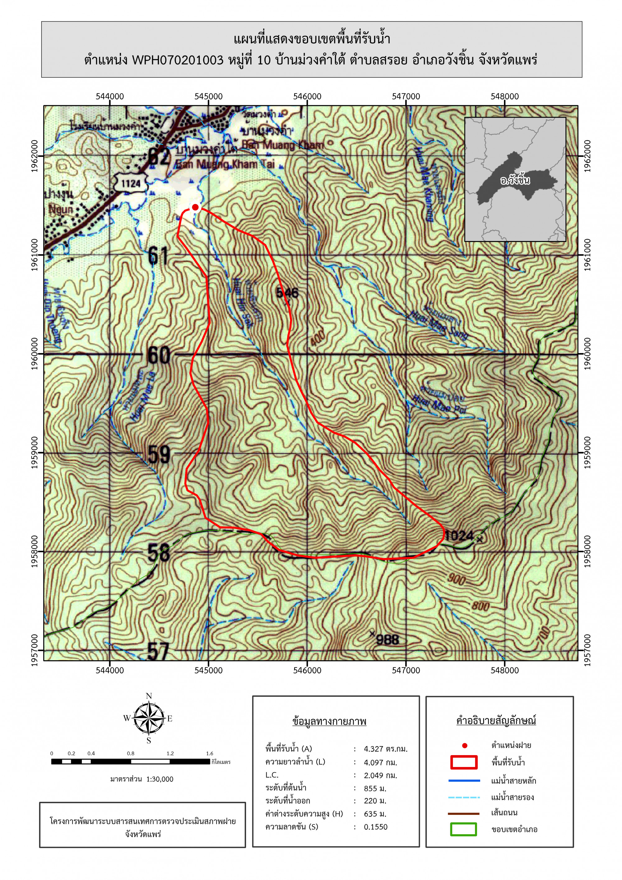 รูปภาพแผนที่แสดงขอบเขตพื้นที่รับน้ำ