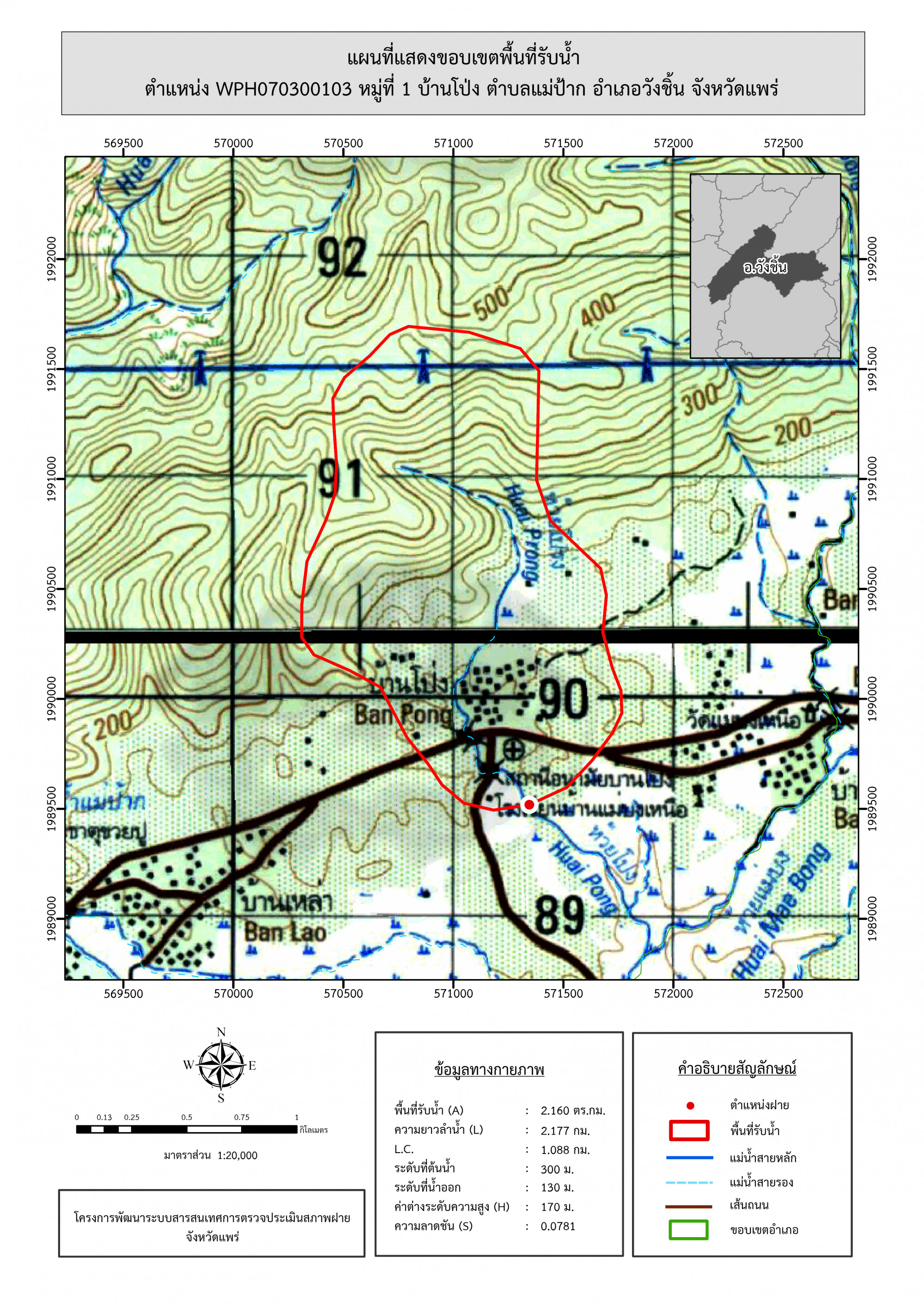 รูปภาพแผนที่แสดงขอบเขตพื้นที่รับน้ำ