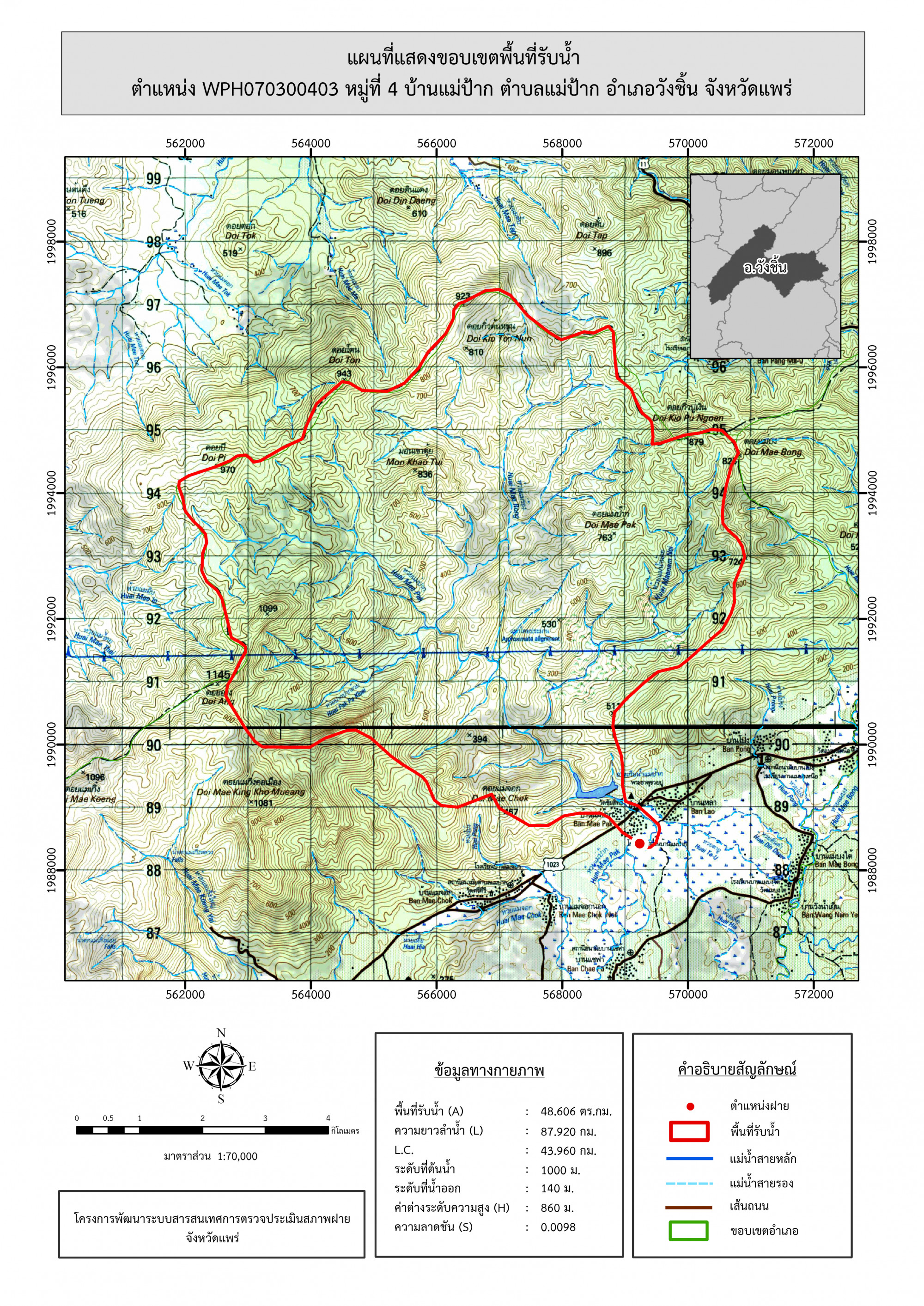 รูปภาพแผนที่แสดงขอบเขตพื้นที่รับน้ำ