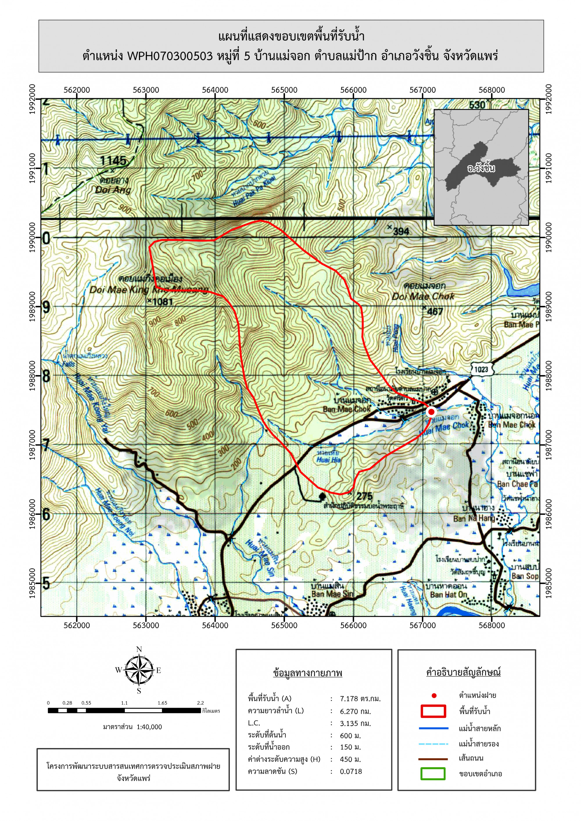 รูปภาพแผนที่แสดงขอบเขตพื้นที่รับน้ำ