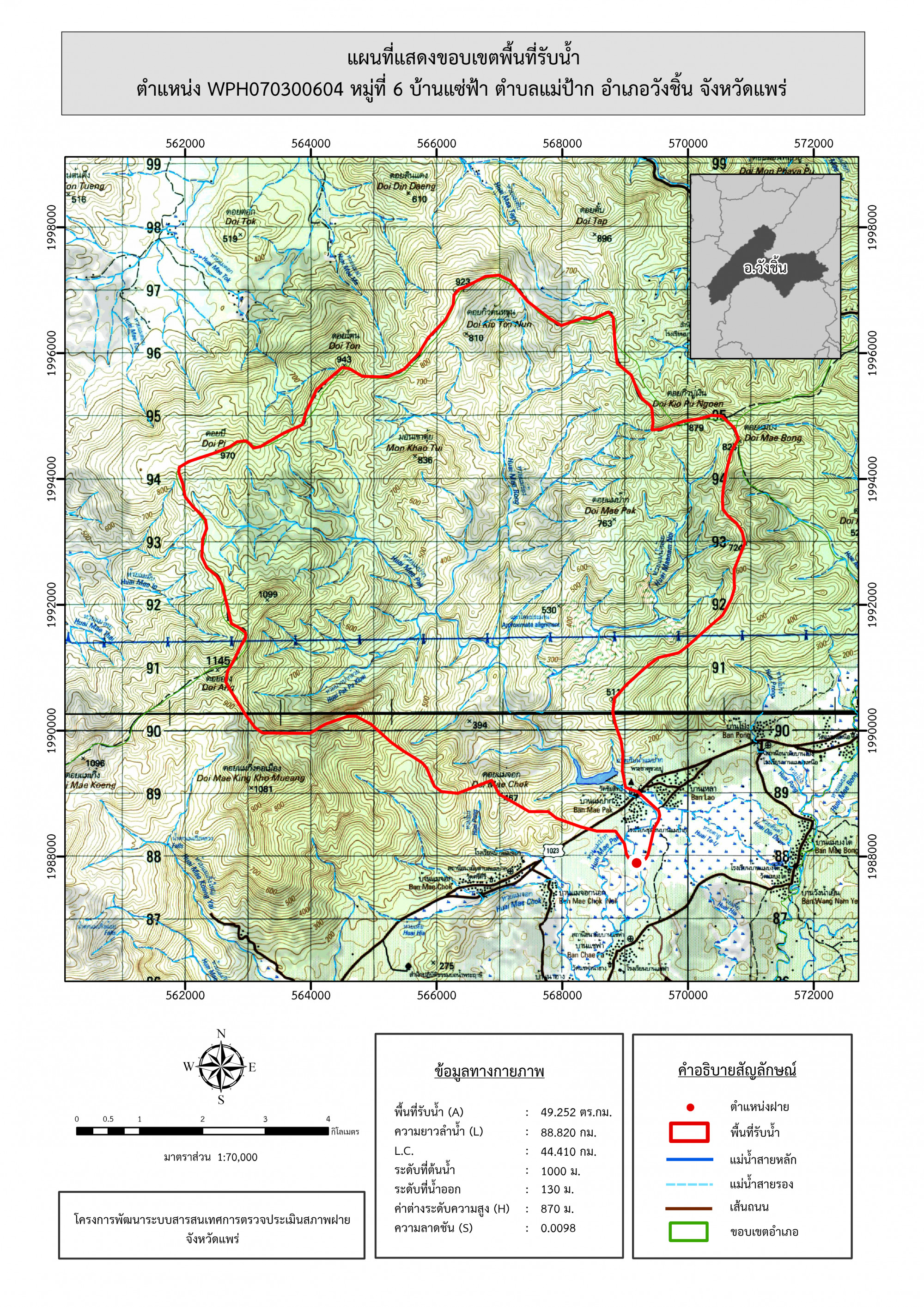 รูปภาพแผนที่แสดงขอบเขตพื้นที่รับน้ำ