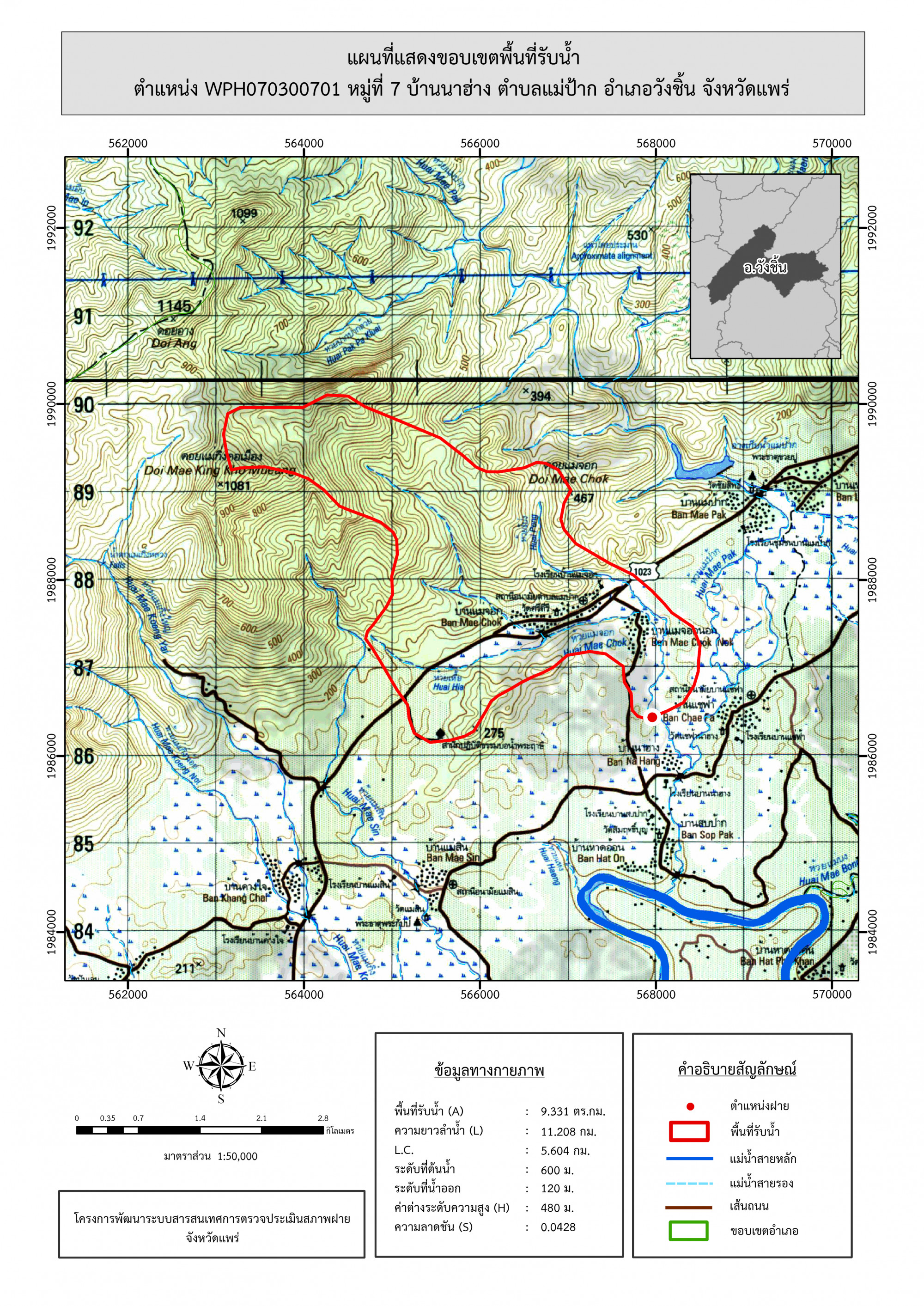 รูปภาพแผนที่แสดงขอบเขตพื้นที่รับน้ำ