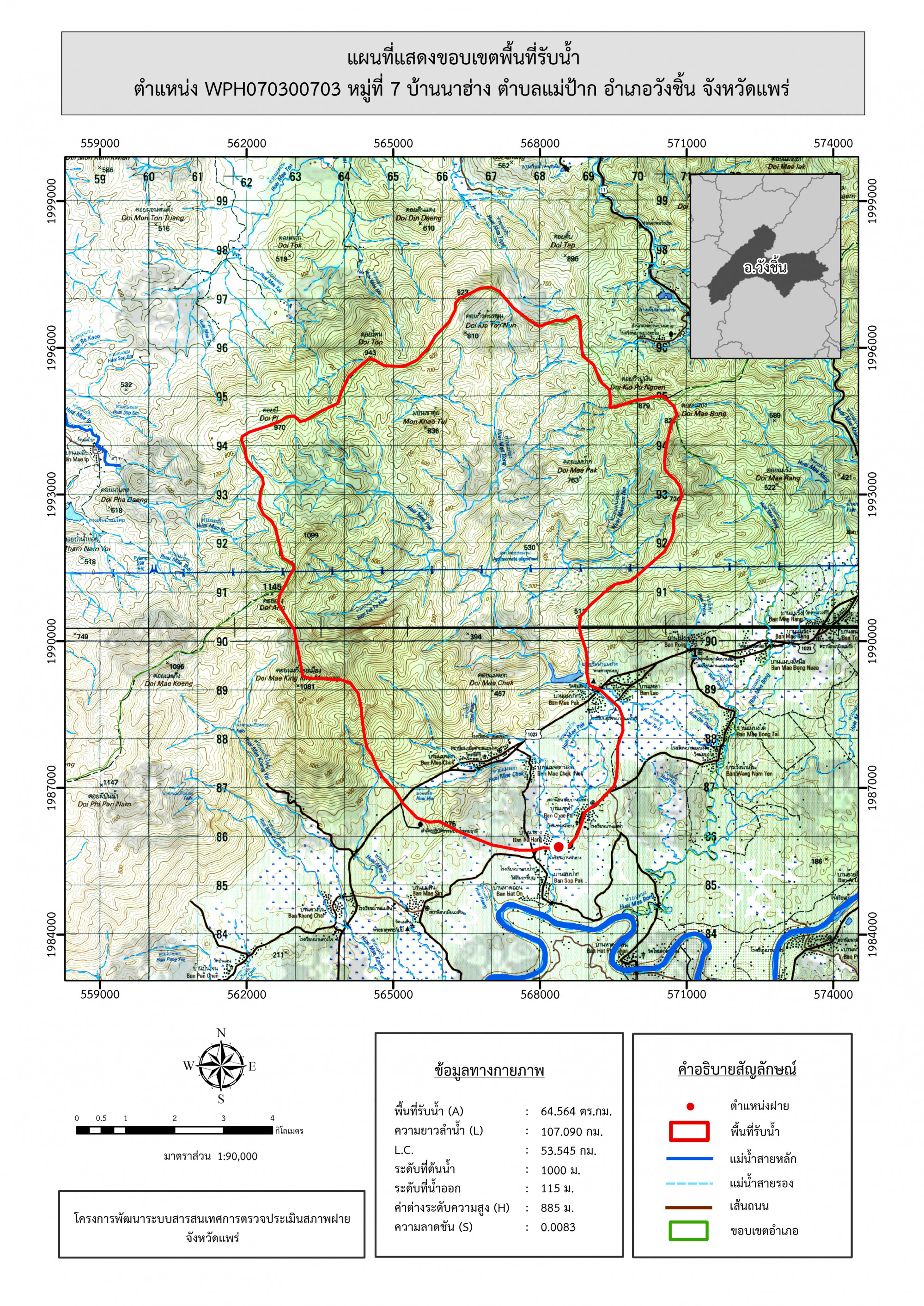 รูปภาพแผนที่แสดงขอบเขตพื้นที่รับน้ำ