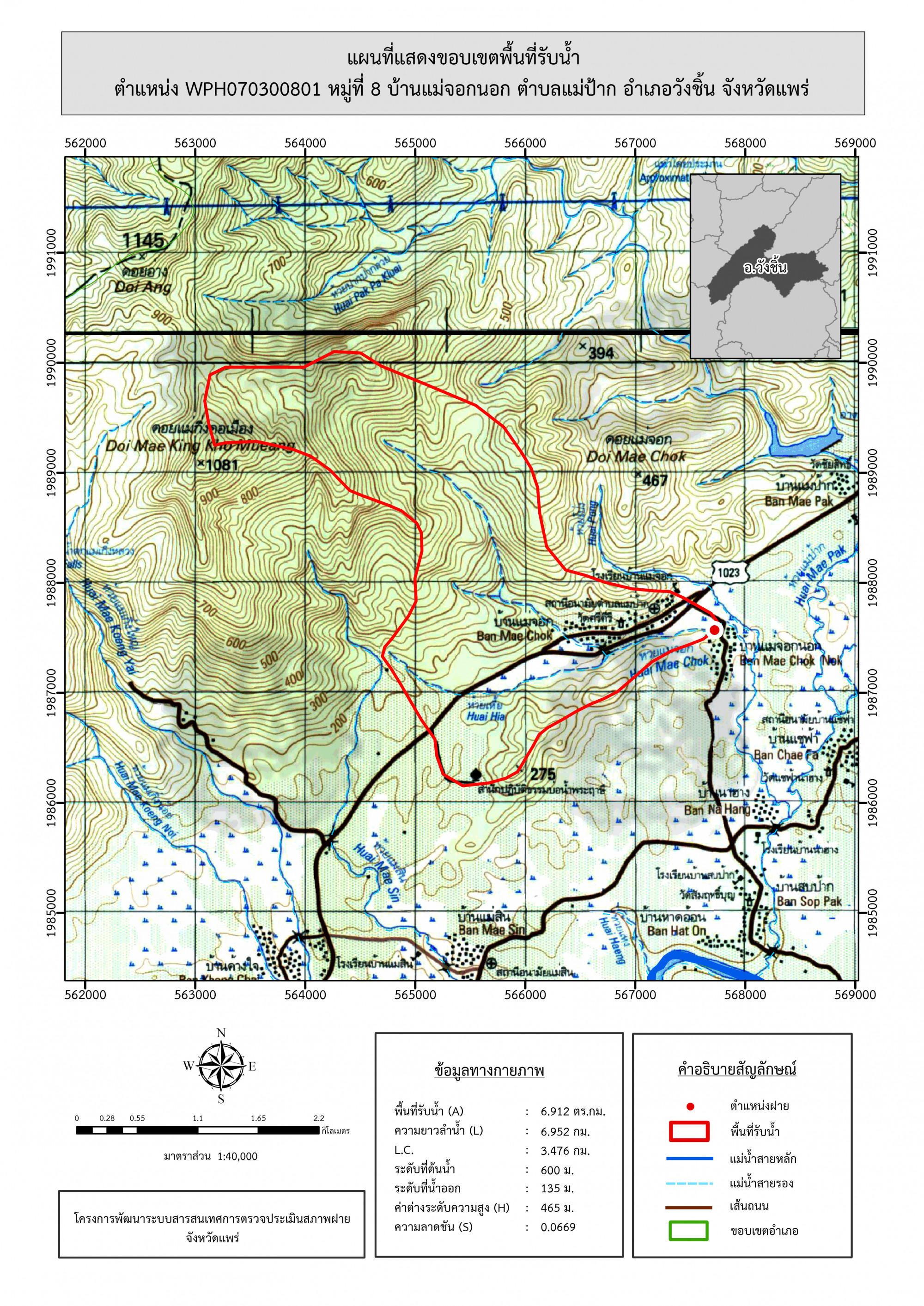 รูปภาพแผนที่แสดงขอบเขตพื้นที่รับน้ำ