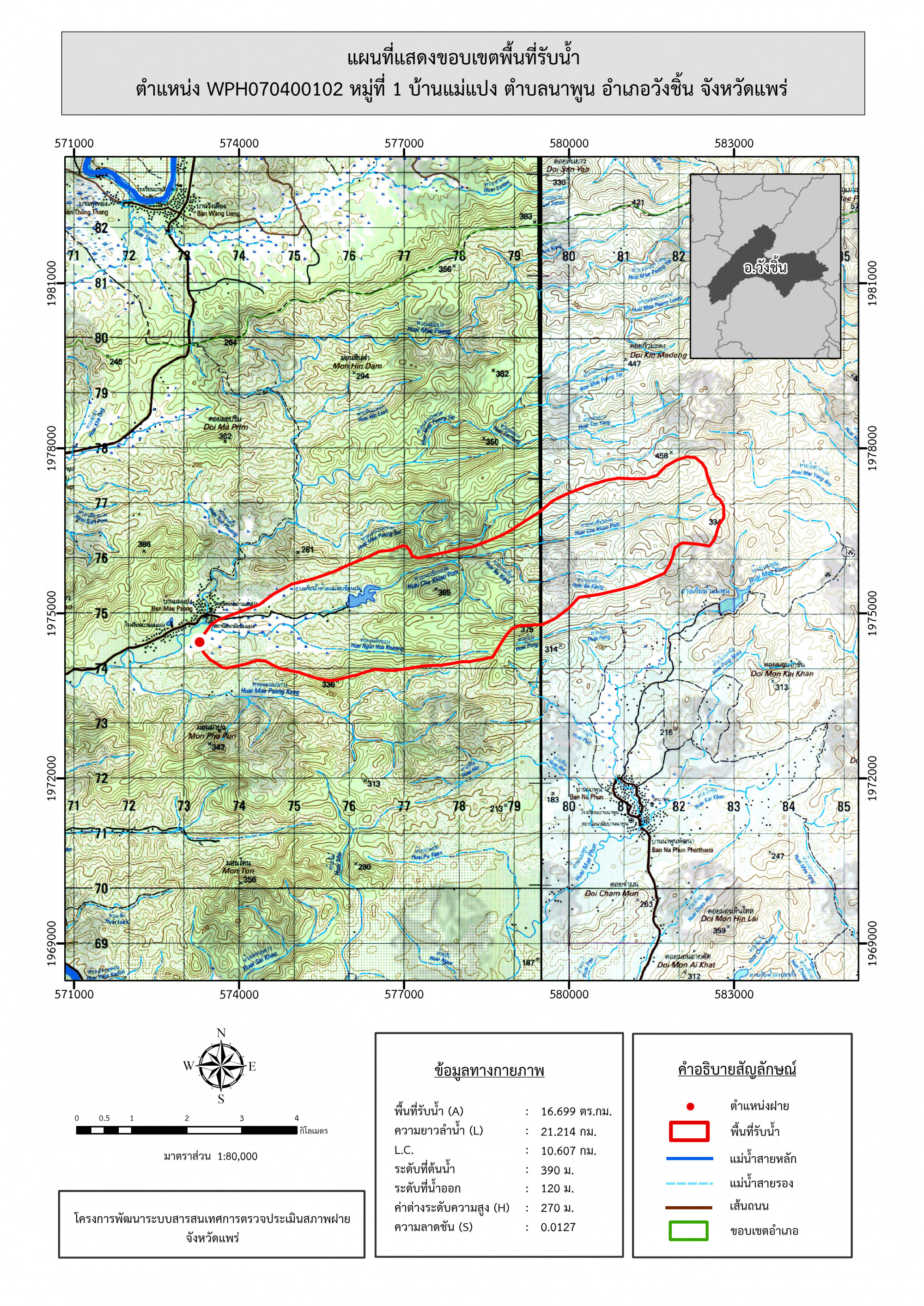 รูปภาพแผนที่แสดงขอบเขตพื้นที่รับน้ำ