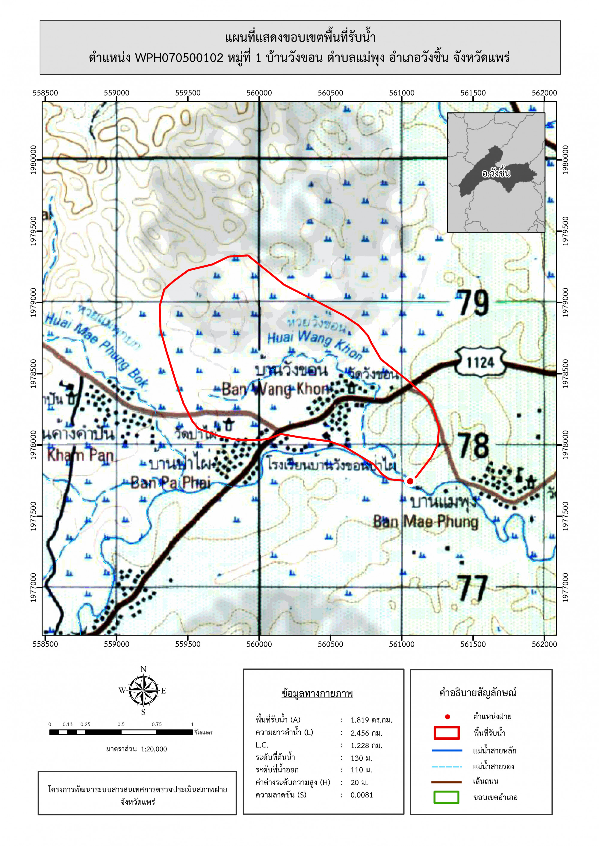 รูปภาพแผนที่แสดงขอบเขตพื้นที่รับน้ำ