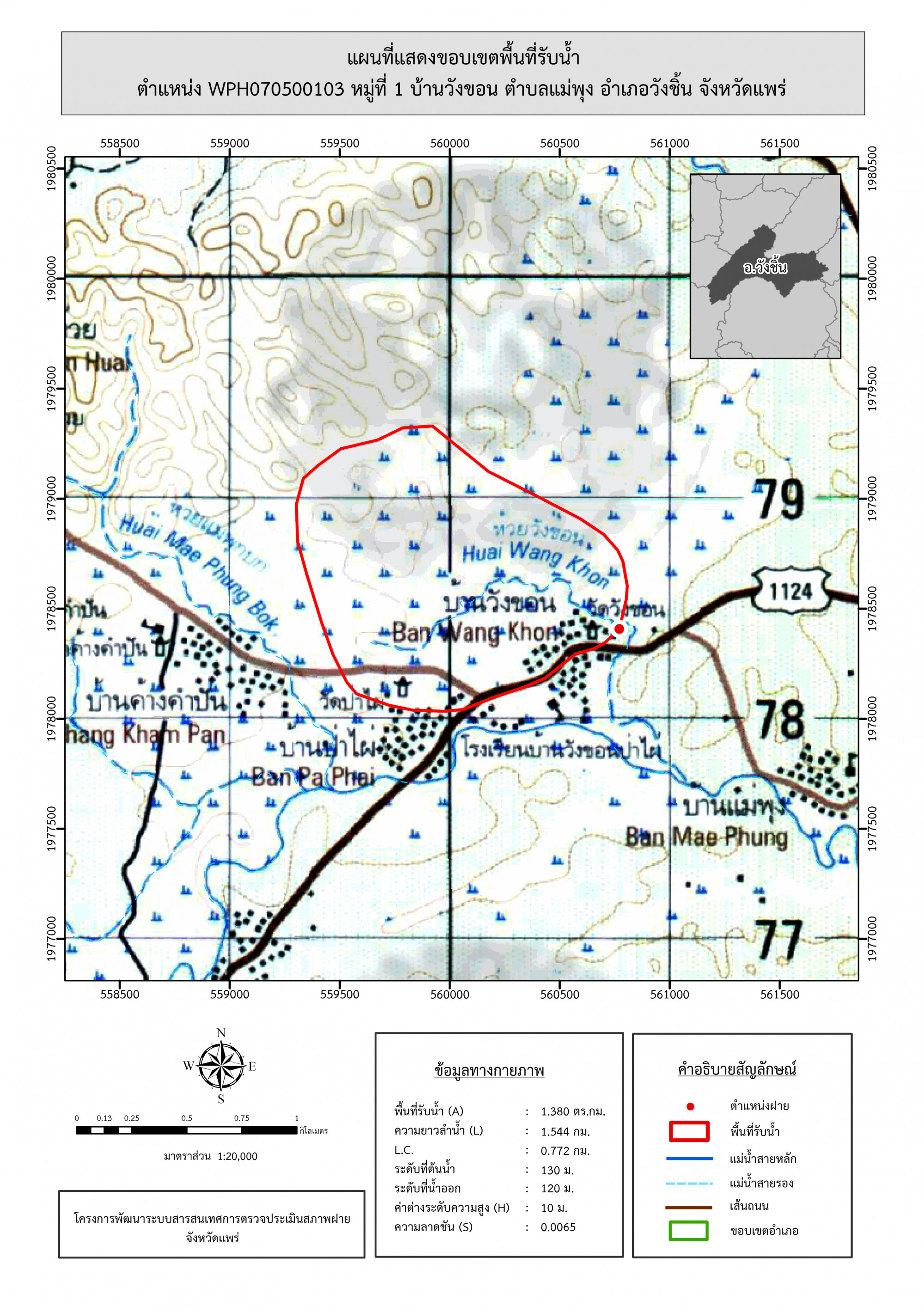 รูปภาพแผนที่แสดงขอบเขตพื้นที่รับน้ำ