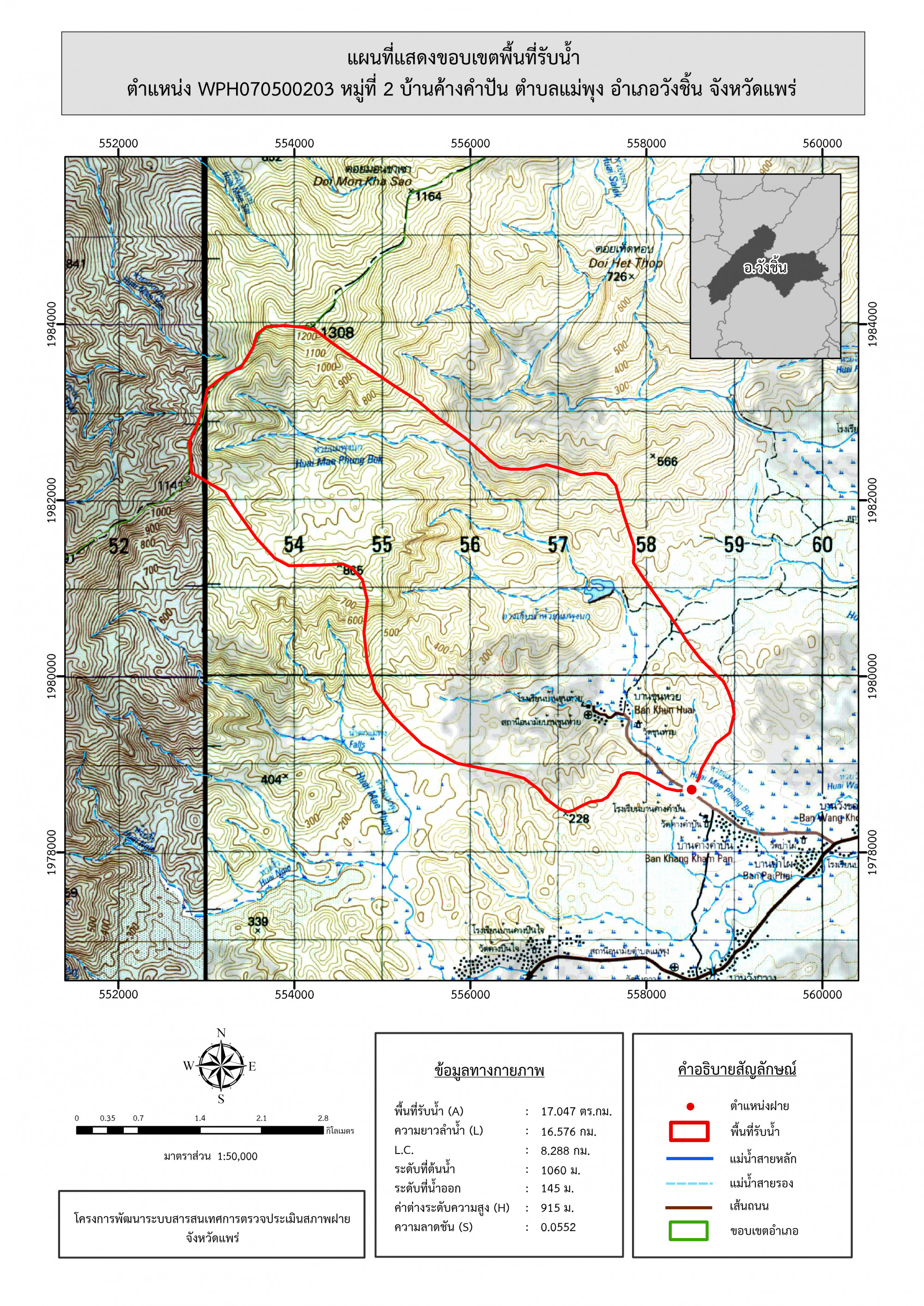 รูปภาพแผนที่แสดงขอบเขตพื้นที่รับน้ำ