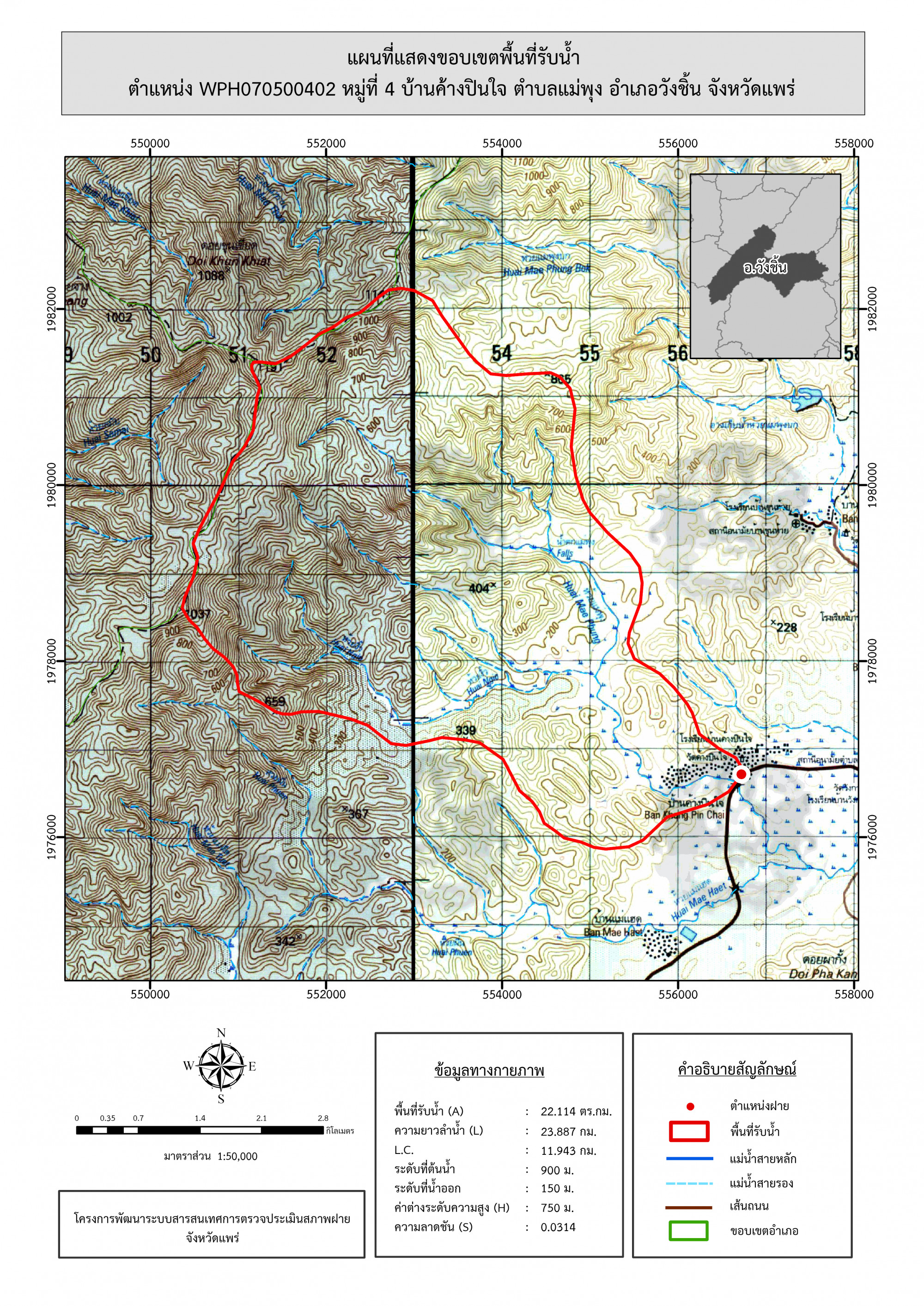 รูปภาพแผนที่แสดงขอบเขตพื้นที่รับน้ำ