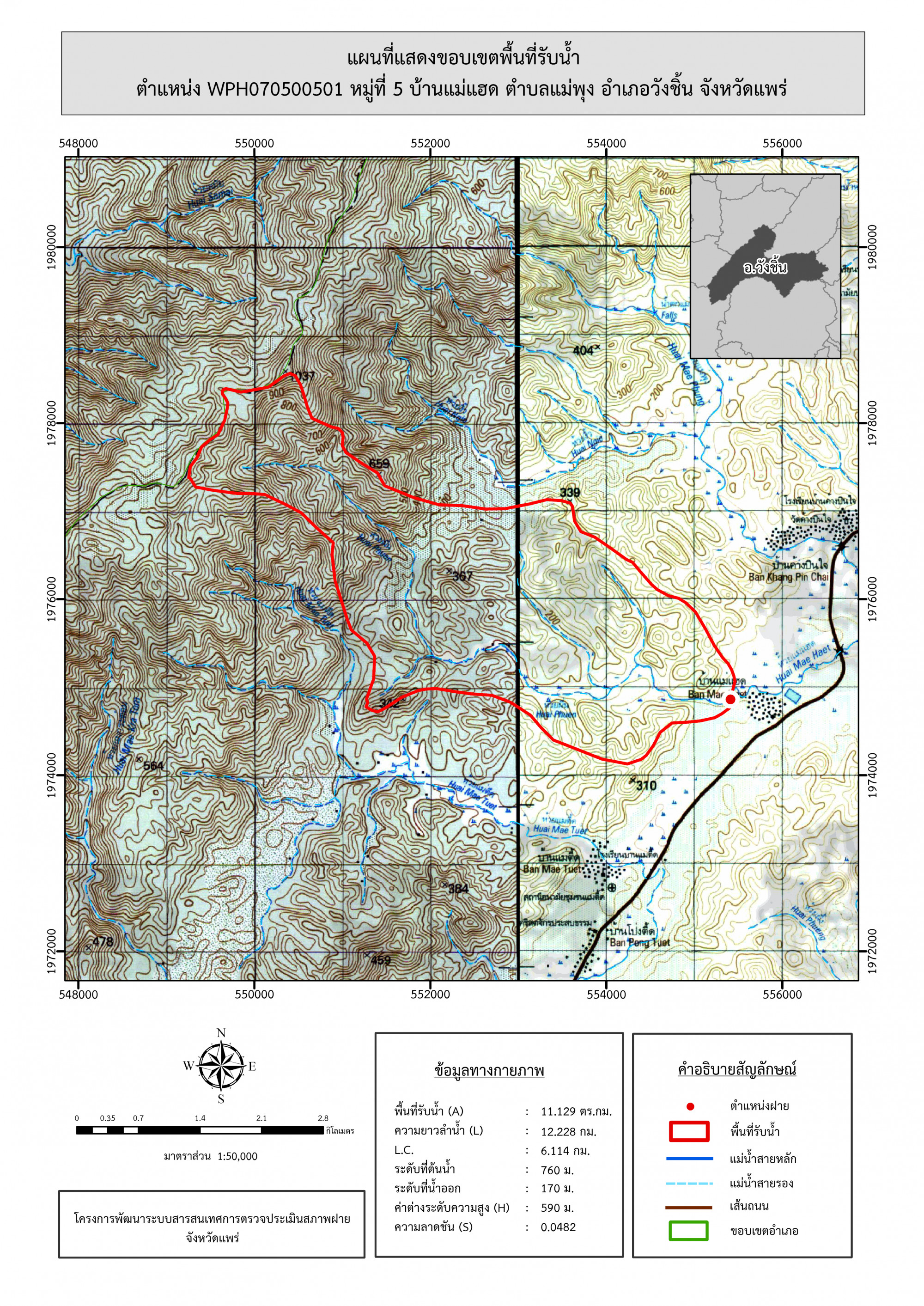 รูปภาพแผนที่แสดงขอบเขตพื้นที่รับน้ำ