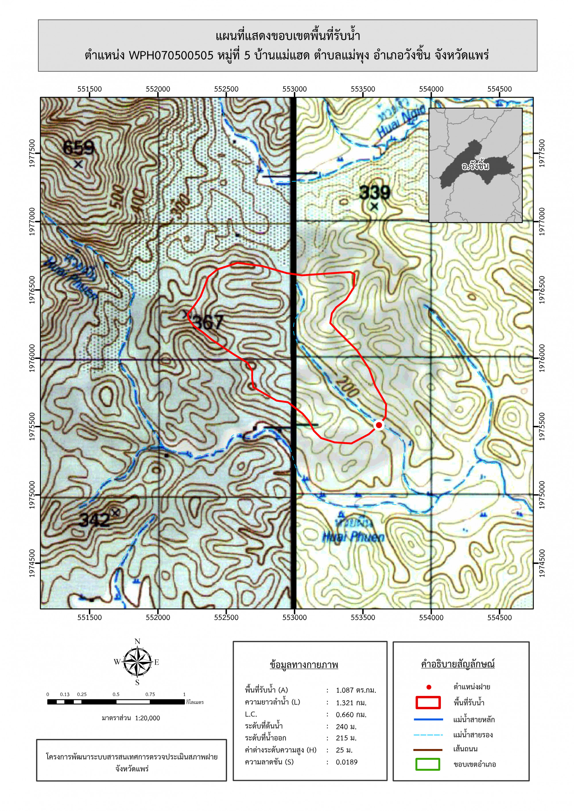 รูปภาพแผนที่แสดงขอบเขตพื้นที่รับน้ำ