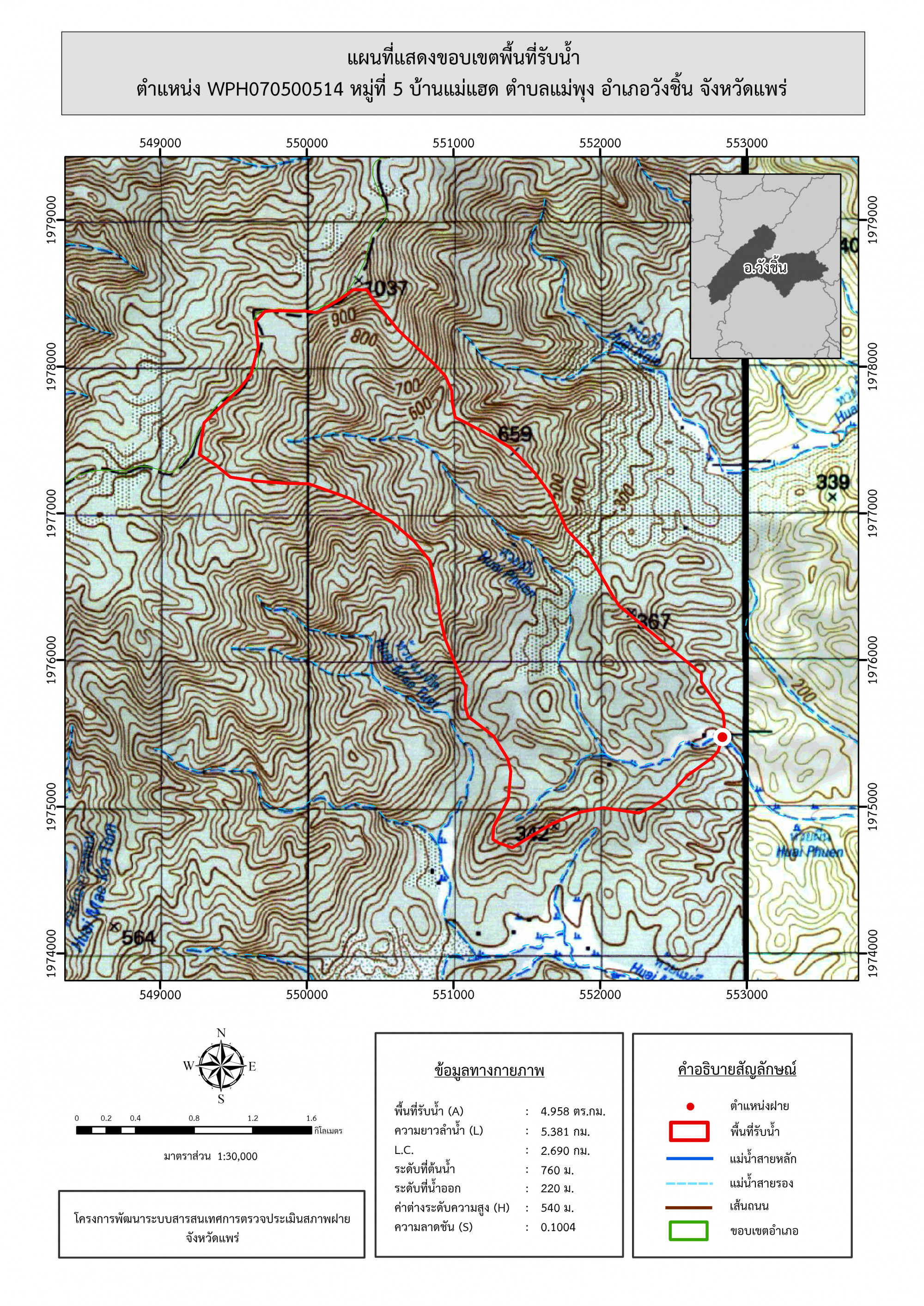 รูปภาพแผนที่แสดงขอบเขตพื้นที่รับน้ำ