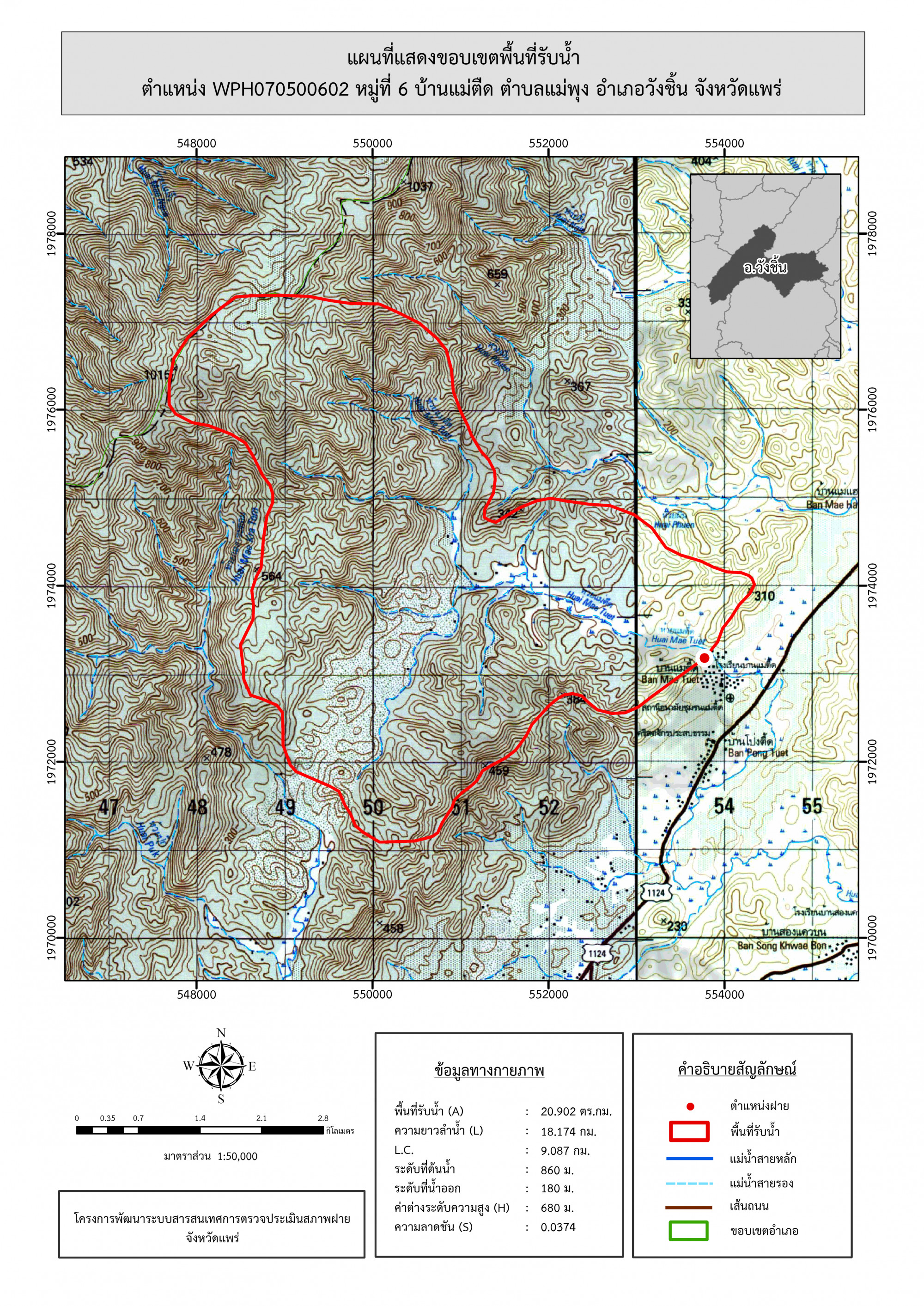 รูปภาพแผนที่แสดงขอบเขตพื้นที่รับน้ำ
