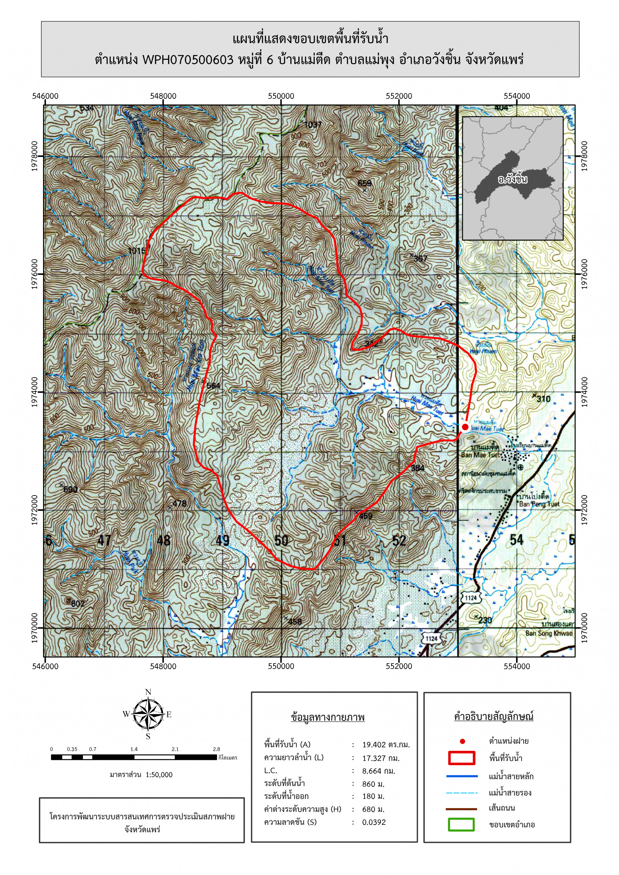 รูปภาพแผนที่แสดงขอบเขตพื้นที่รับน้ำ