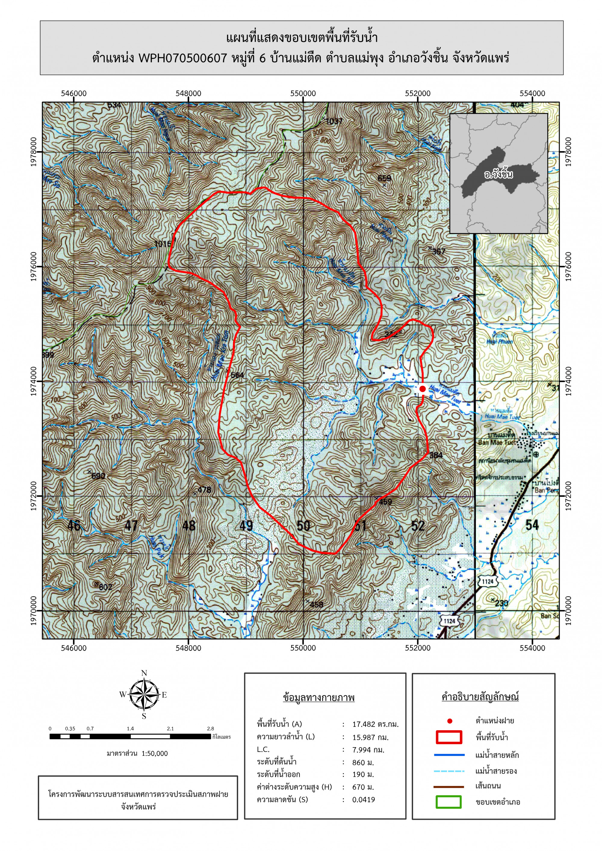 รูปภาพแผนที่แสดงขอบเขตพื้นที่รับน้ำ