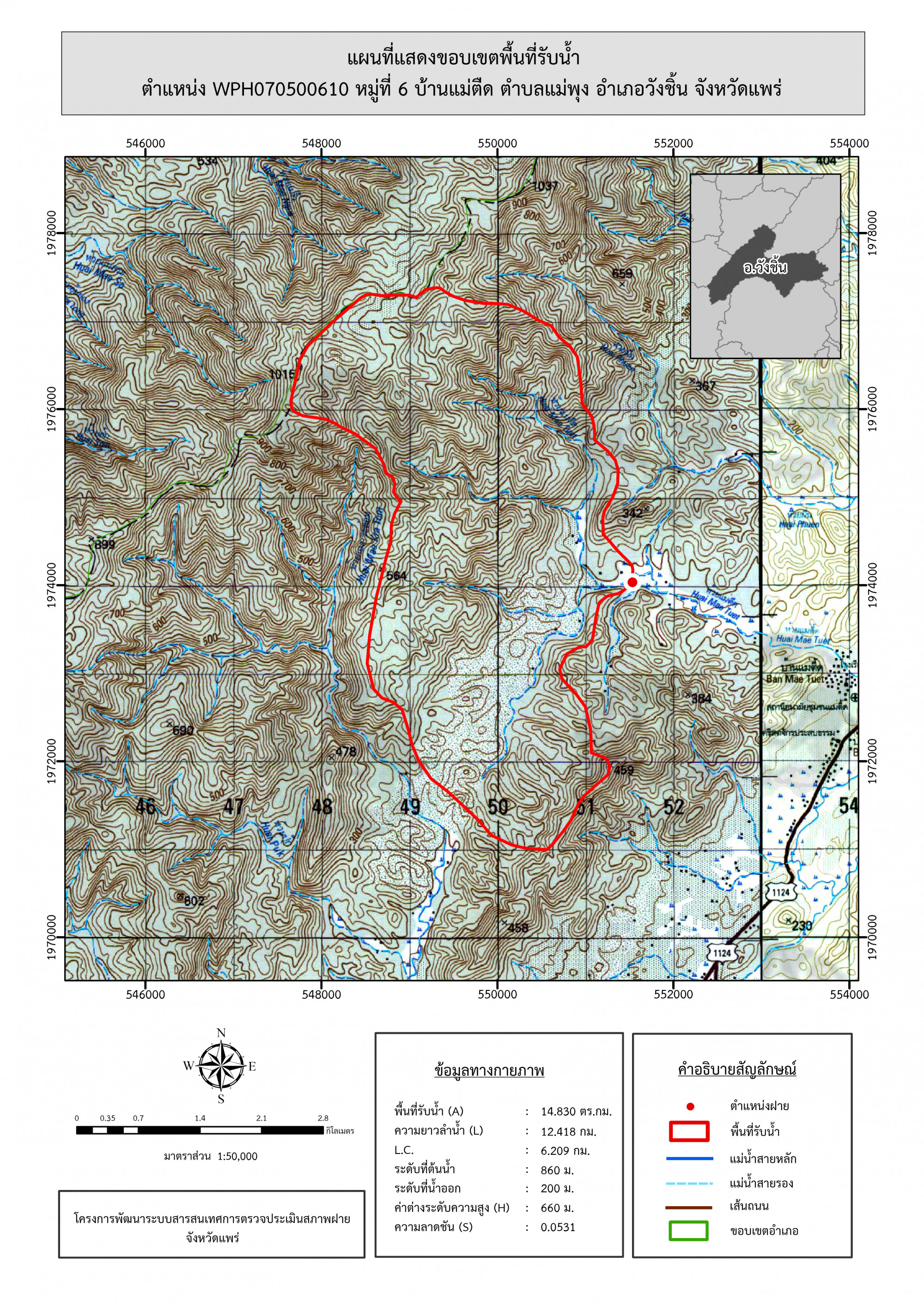 รูปภาพแผนที่แสดงขอบเขตพื้นที่รับน้ำ