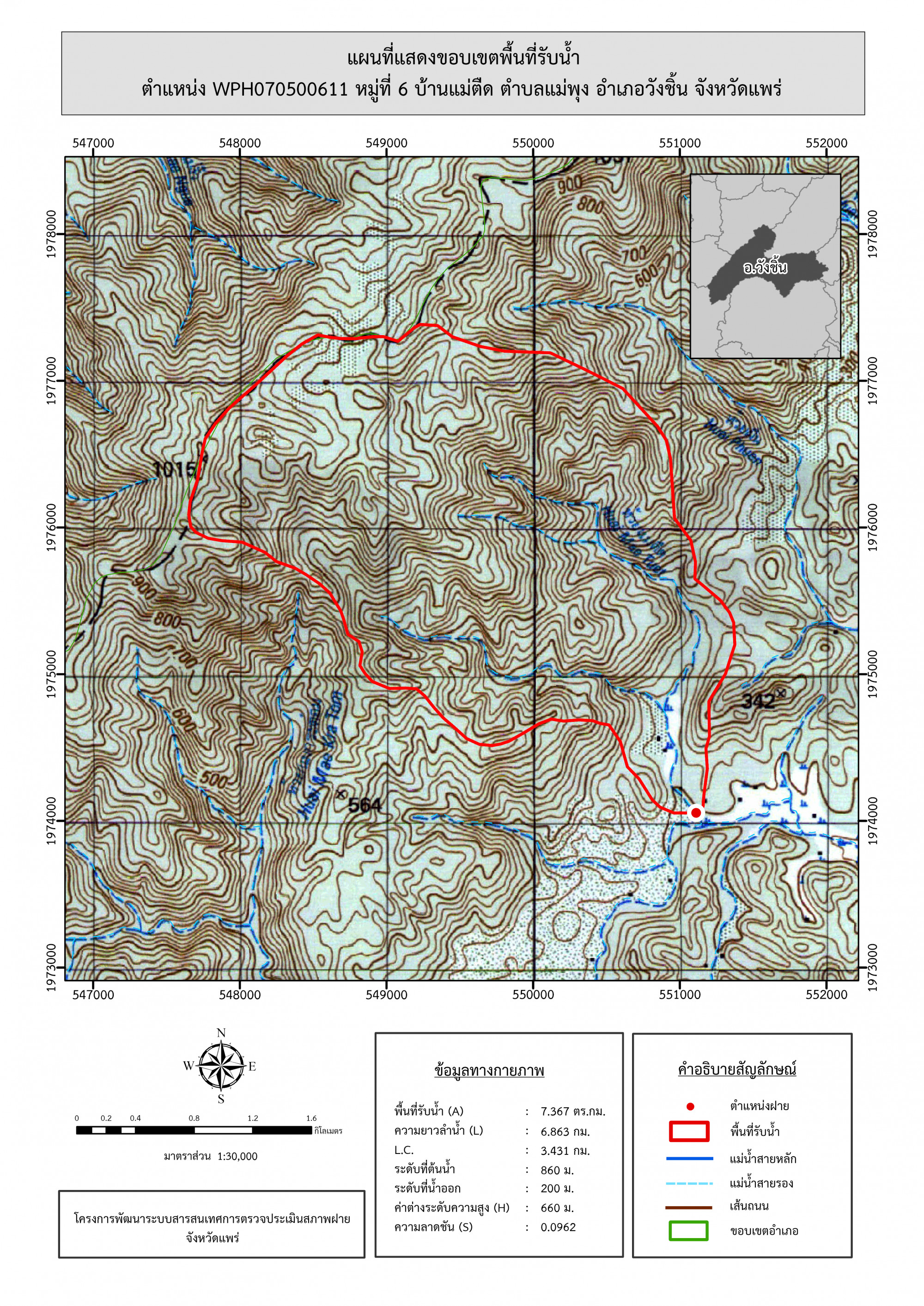 รูปภาพแผนที่แสดงขอบเขตพื้นที่รับน้ำ