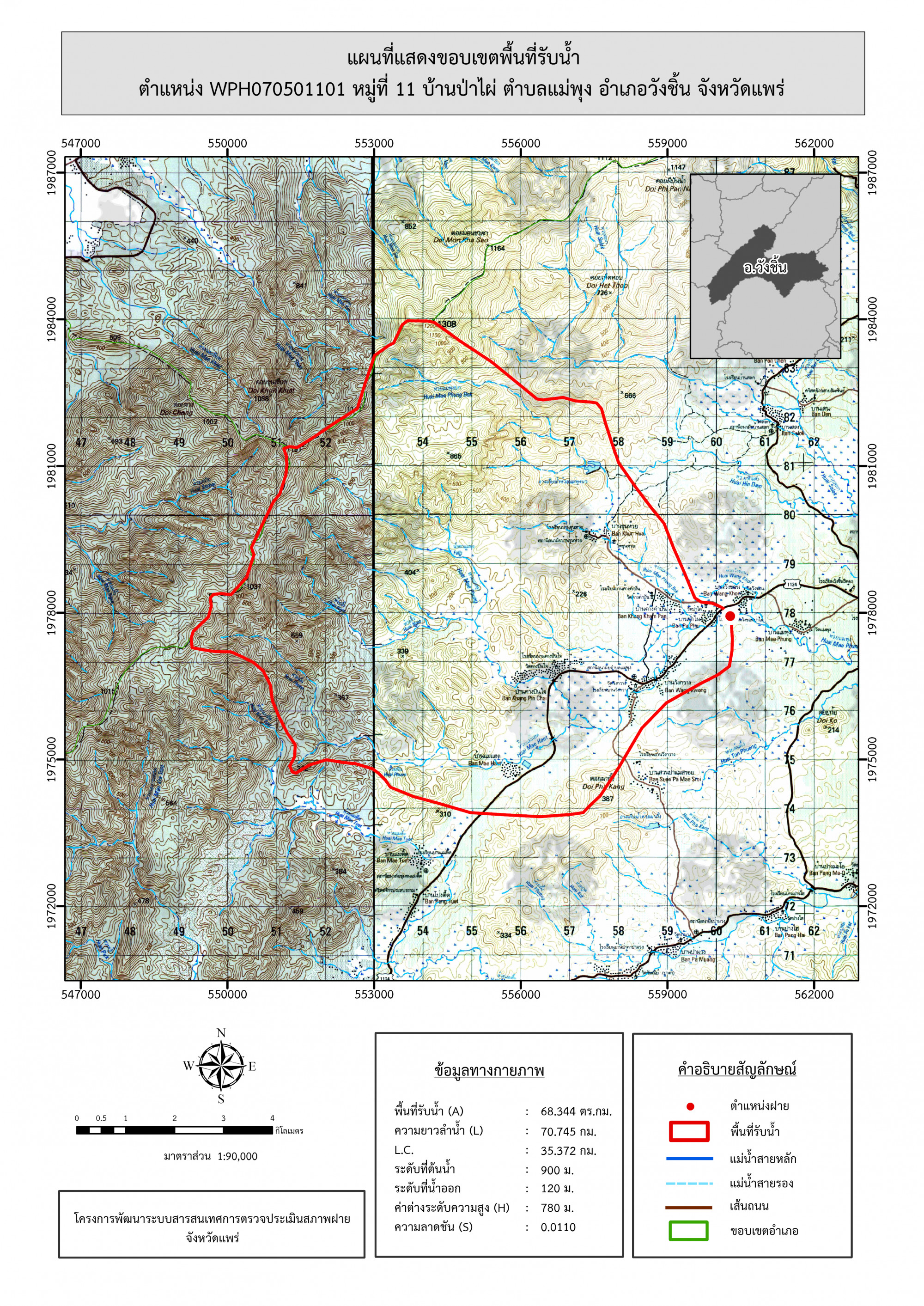 รูปภาพแผนที่แสดงขอบเขตพื้นที่รับน้ำ