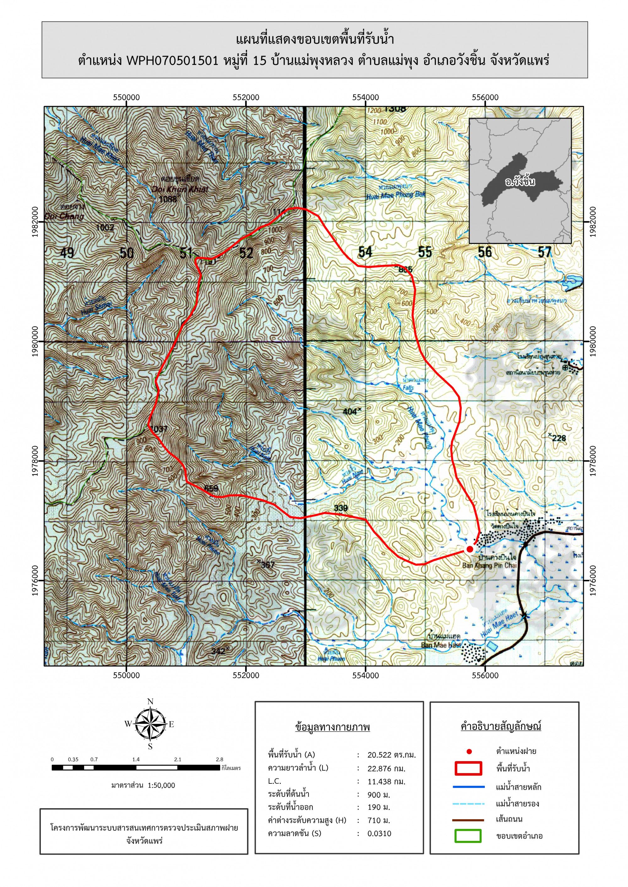 รูปภาพแผนที่แสดงขอบเขตพื้นที่รับน้ำ