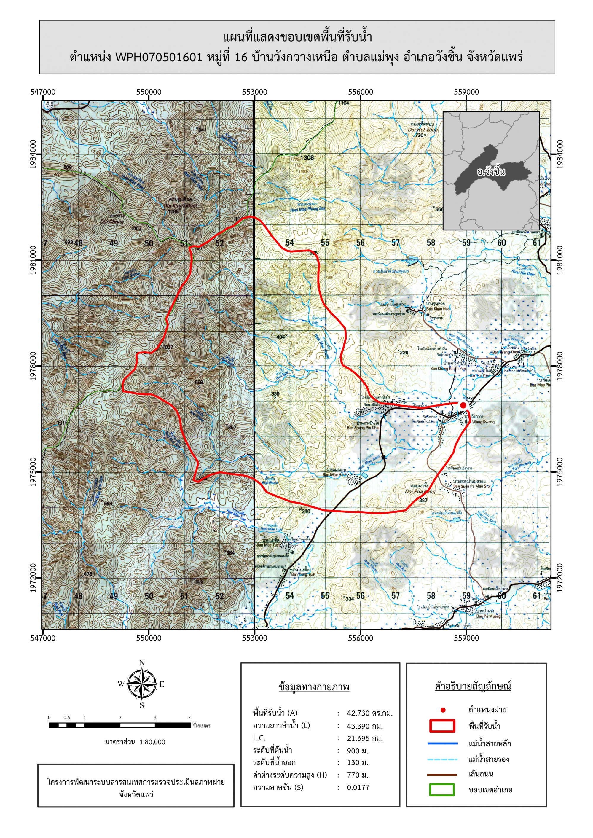 รูปภาพแผนที่แสดงขอบเขตพื้นที่รับน้ำ