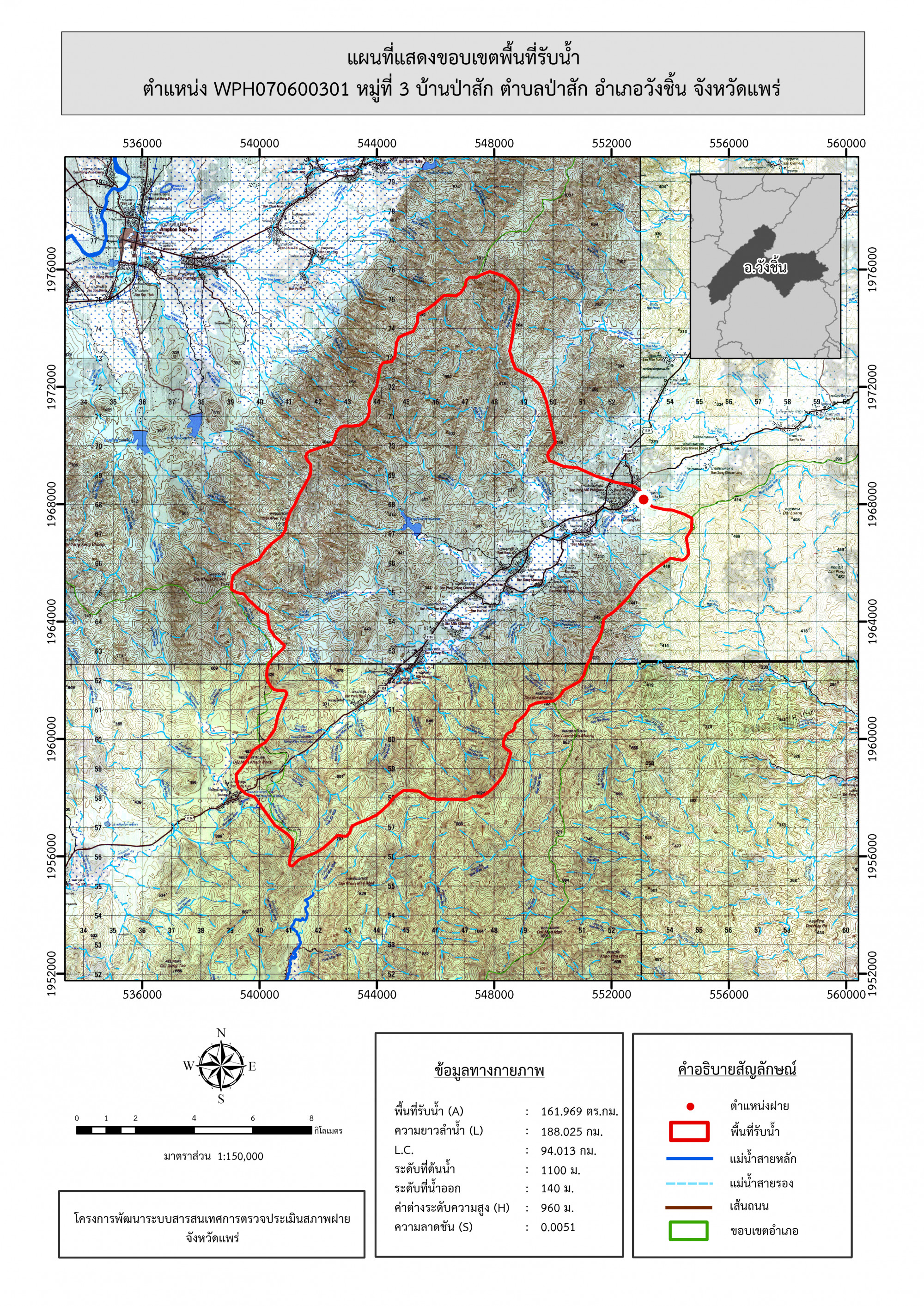รูปภาพแผนที่แสดงขอบเขตพื้นที่รับน้ำ